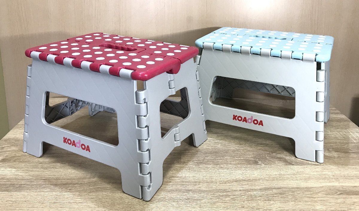 【中古】KOAdOA 折りたたみ 踏み台 ステップ台 コンパクト 脚立 子供 ドット柄 水色/ピンク まとめ 2点セット