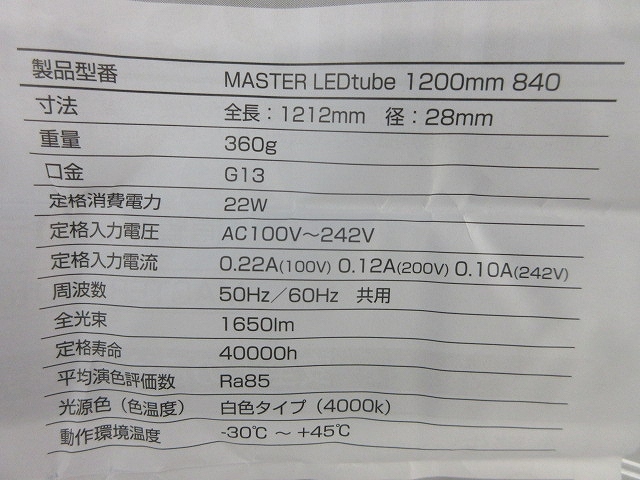 商品型番MASTER LEDtube 1200mm 840