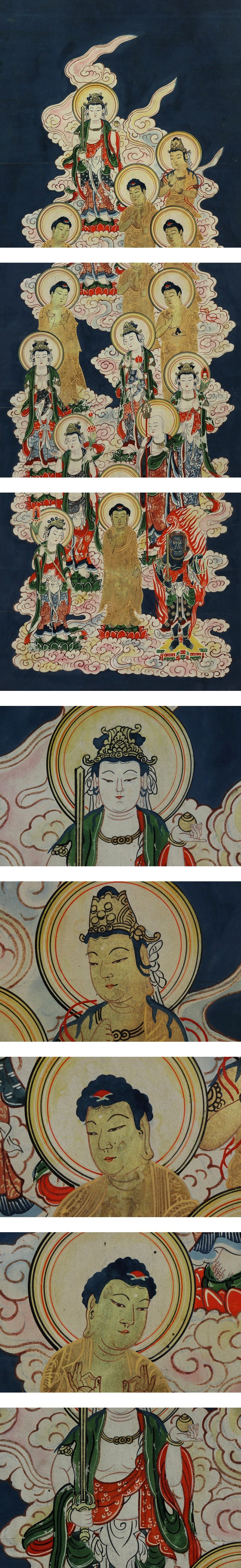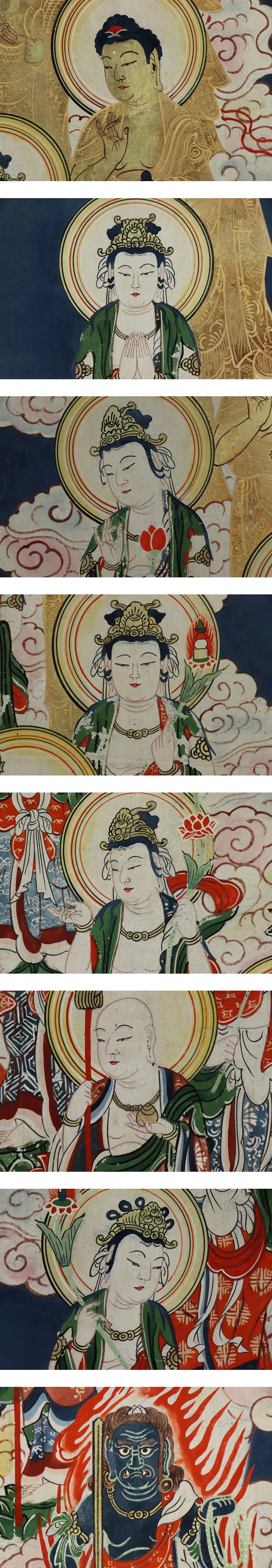 古仏画【十三佛】 本紙は、染み痕、擦れ痕があります。 表装は、改装済みの為きれいです。 【サイズ】 作品 横約37.5cm×縦約93.5cm 作品 横約37.5cm×縦約93.5cm |