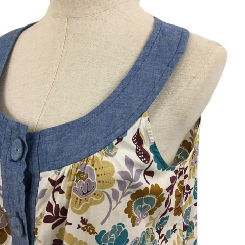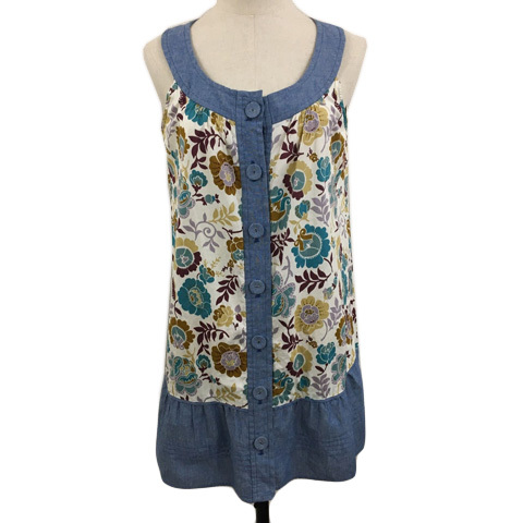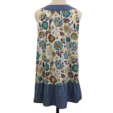 ヴェールダンス Vert Dense ワンピース Iライン ミニ 切替 マルチカラー 花柄 ノースリーブ L 水色 ベージュ ライトブルー レディース