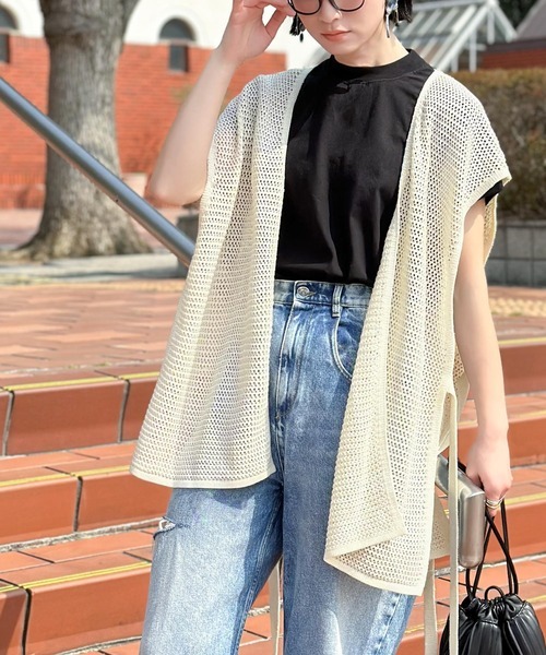 参考商品名:《JaVa ジャバコラボ》1枚で即、トレンド感。かぎ針風ジレニット