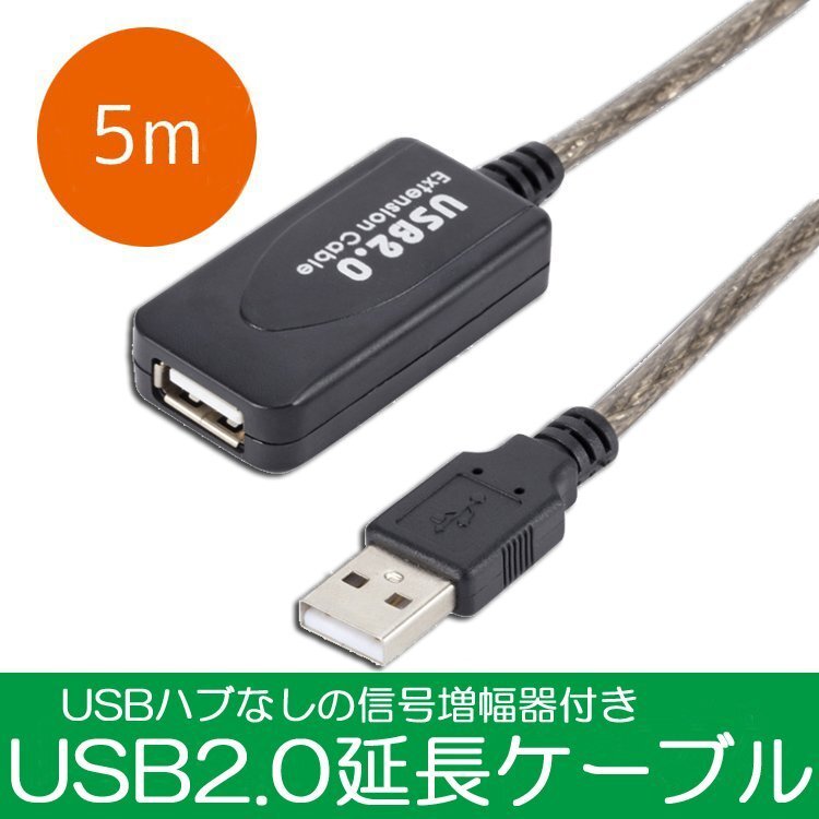 ◆USB2.0延長ケーブル 信号増幅5m延長 オス/メス USB延長ケーブル エクステンダーUSB プリンター スキャナーなどに 信号増幅補正回路内蔵 転送安定 最大20mまで USBEX5M