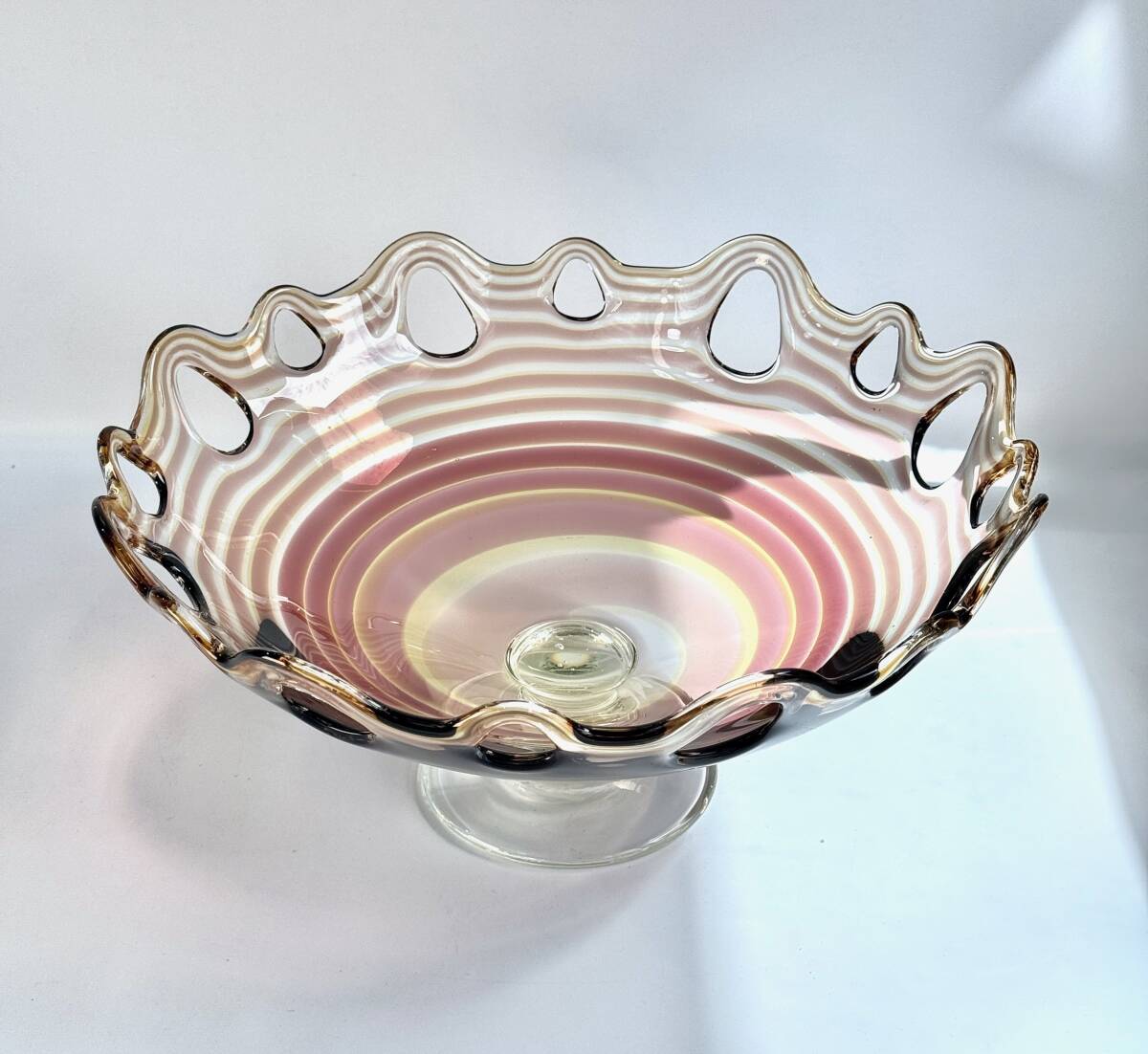 ビンテージ 職人よる手作りの大きなガラスコンポート フルーツコンポート ガラスボウル 珍しい一点物 直径35㎝ 高さ17㎝