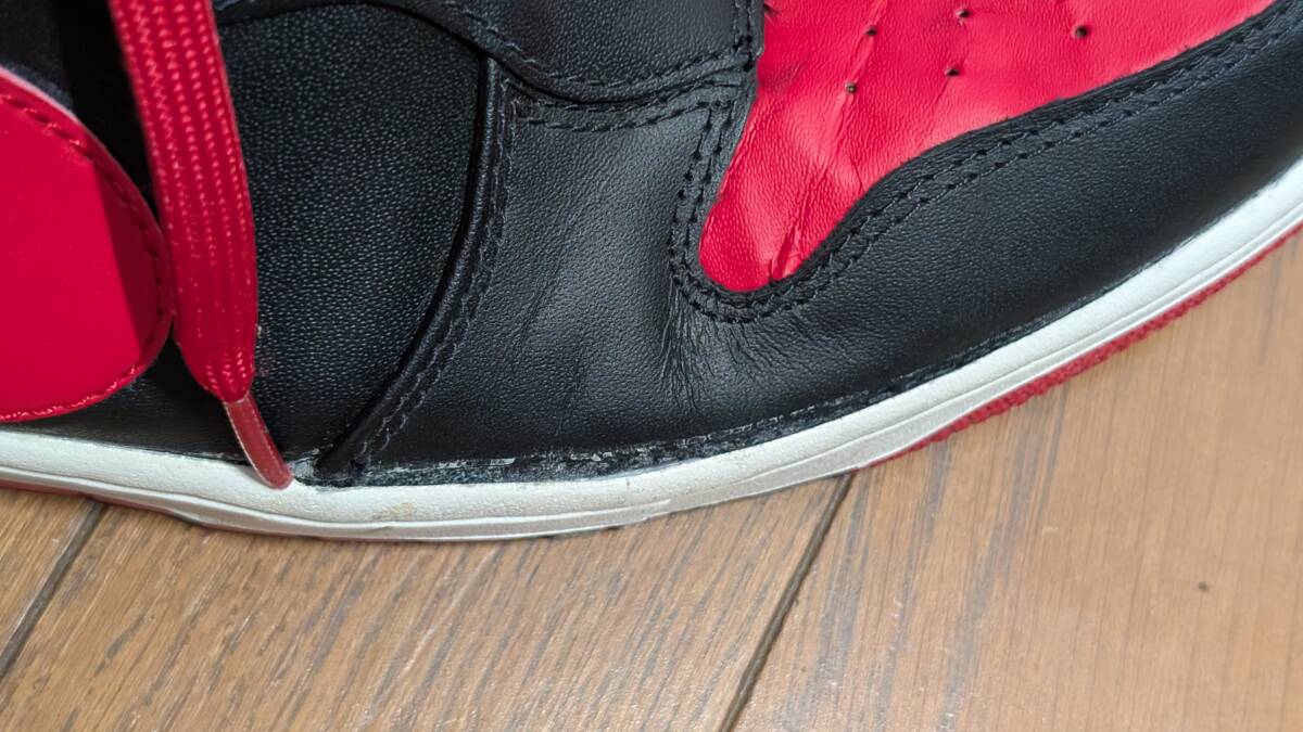 灘あり理由は画像4,5のようにソール部分との剥離が全体的に見られます。また加水分解する素材かどうかもわからないため購入後のトラブルには一切責任を持ちません。