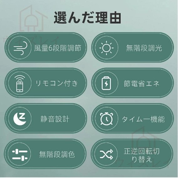 【正逆回転可&6段階風量調節】 | シーリングファンライトは6つ階段風量調節できます。ファンは正回転・逆回転2つ回転方向を搭載しています。夏には正回転で調整して、天井から扇風機ような爽やかな風を当たって、冬には逆回転で冷気を吸い上げて、暖房内の空気を循環して、不快の温度差を解消します。春秋に自然風量設定して、空気を循環させるとともに、部屋に干しした洗濯物も乾きやすいです。一年中お使えいただけます。実用感たっぷりです。 |