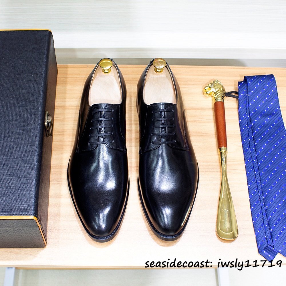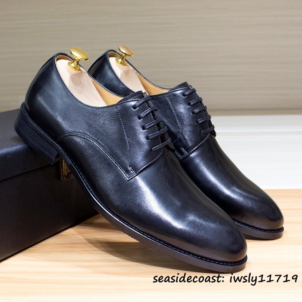 定価9万◆ビジネスシューズ 本革 レザーシューズ 最高級 紳士靴 職人手作り ビジネスシューズ 上級牛革 革靴 フォーマル ブラック 25.0cm