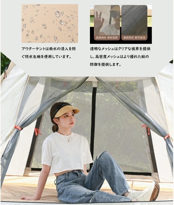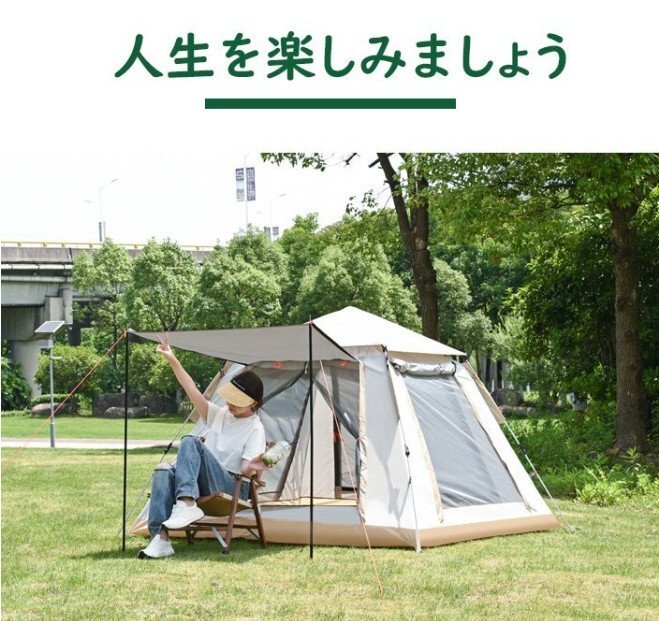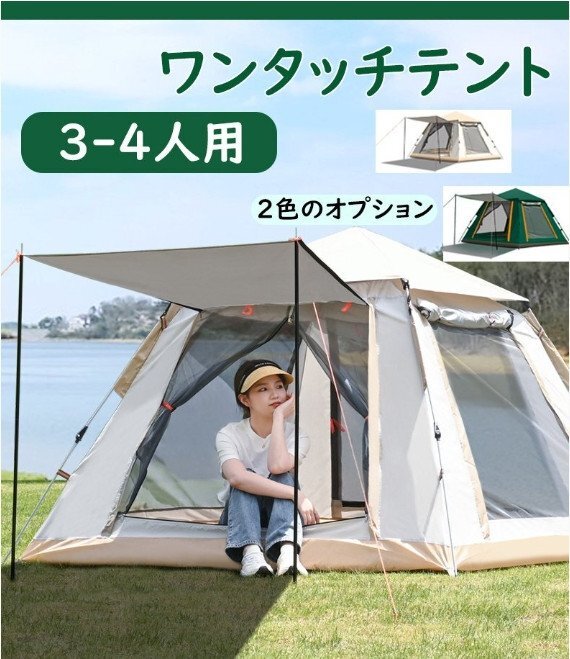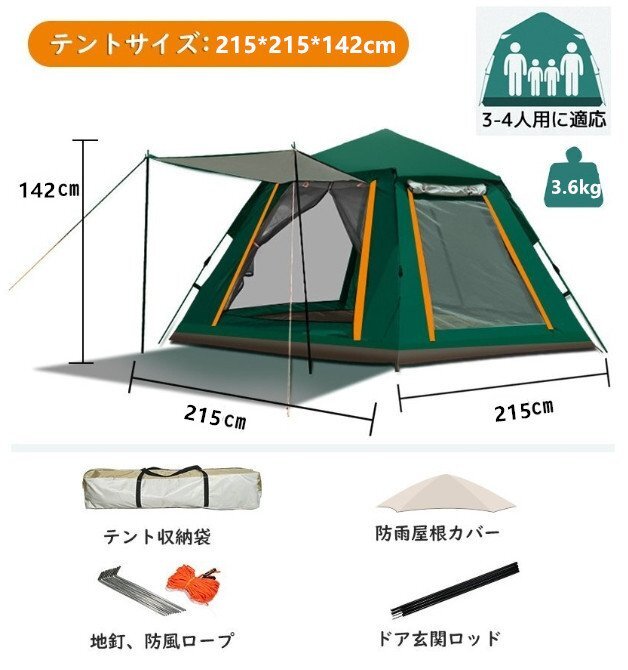ポップアップテントワンタッチ テント 幅215cm キャンプ 二重層 コンパクト 紫外線防止 アウトドア 日よけ 3~4人用 (a106)
