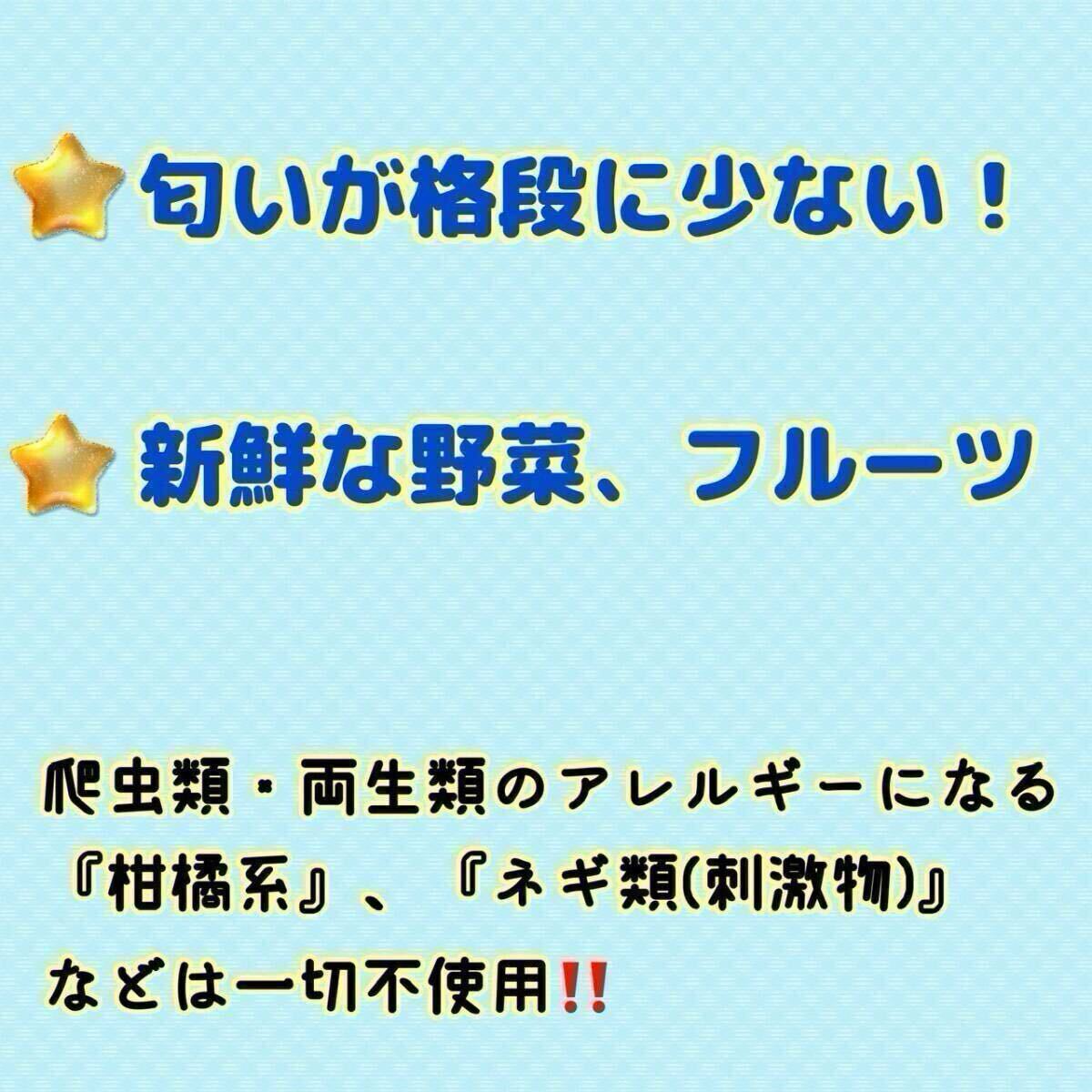餌一覧 : 蒸し野菜、果物、きな粉、ビール酵母、貝殻、青米、蚕のさなぎ粉等
