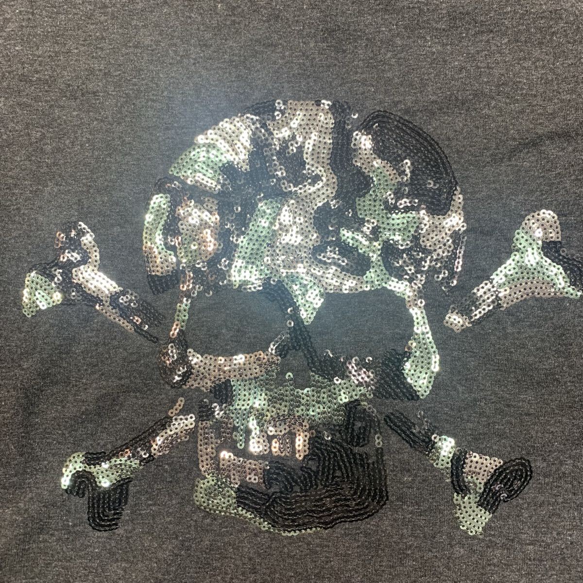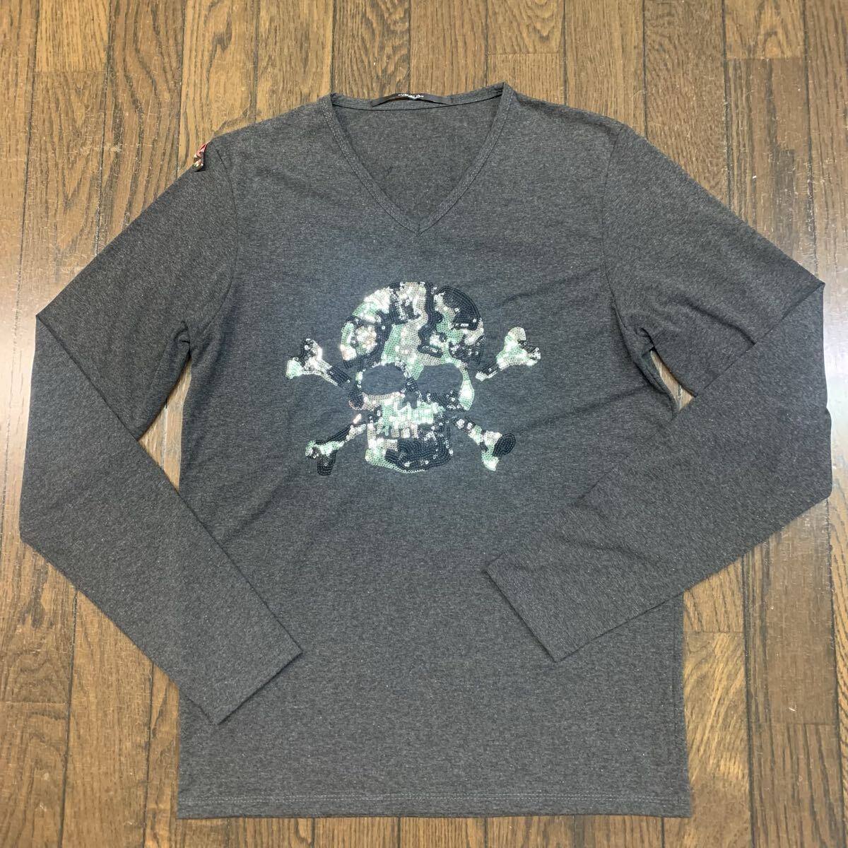 美品 イタリア製 ウザリス 迷彩スパンコール ロングTシャツ オールストレッチ チャコールグレー になります
