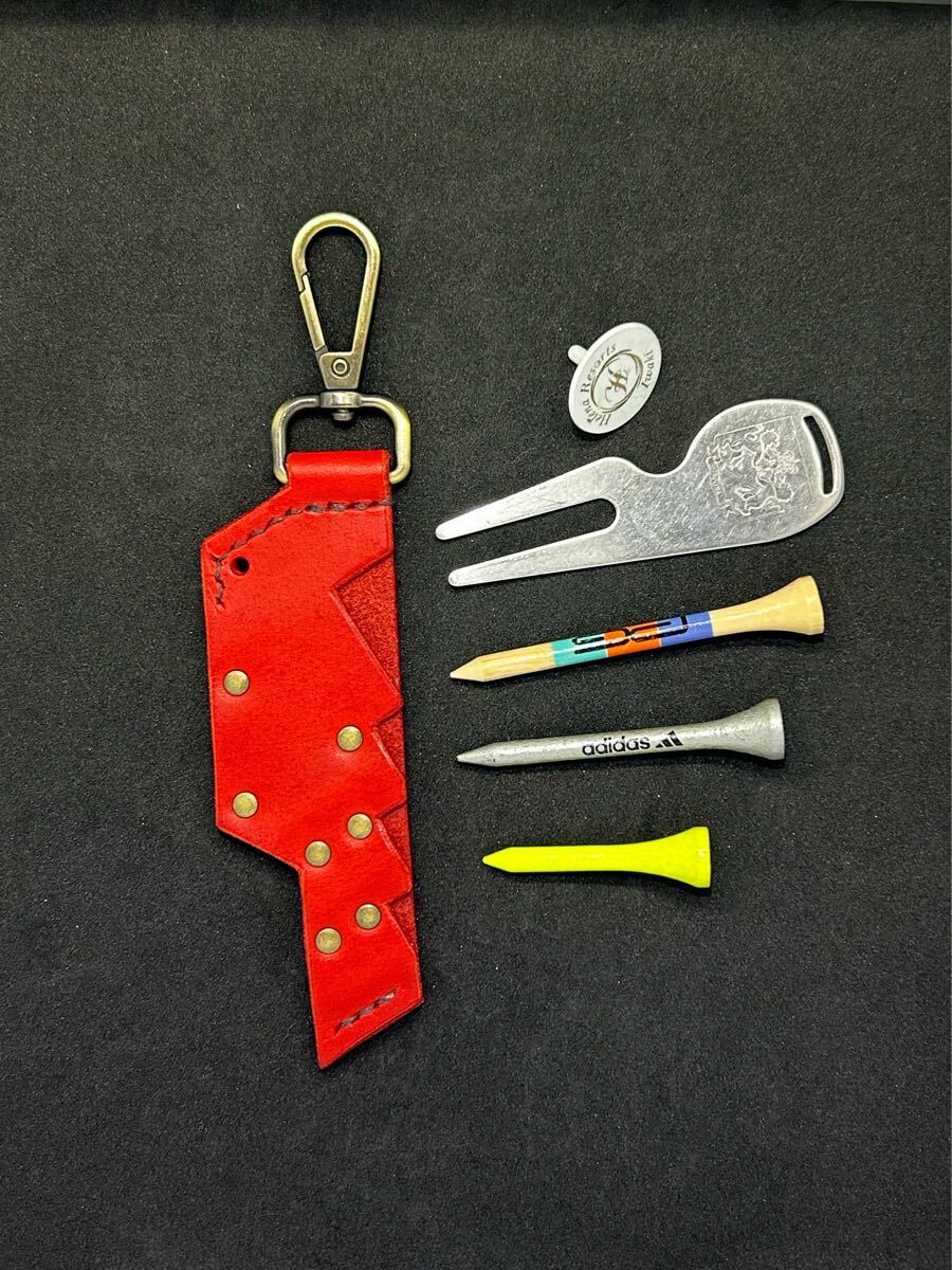 ハンドメイド(手作り)のゴルフティー・ゴルフボールマーカー・グリーンフォークのホルダーケースです。