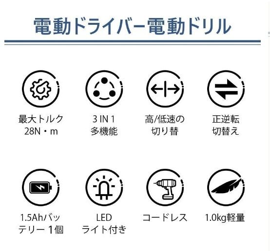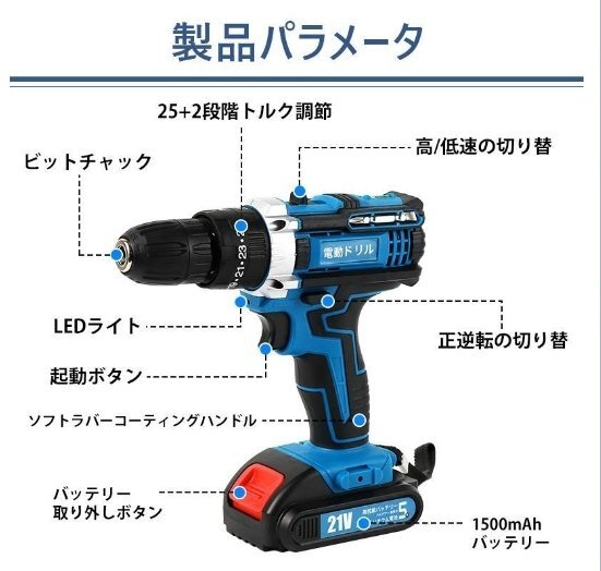 電動ドライバー 充電式 スピード調節機能 LEDライト付き コードレス 小型 軽量 電動ドリル ビット25本付き 収納ケース付き 正逆転両用 無段変速 過熱 過負荷保護