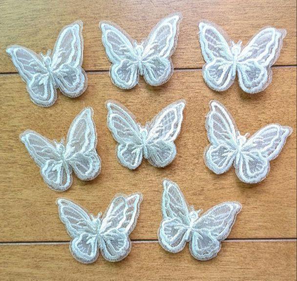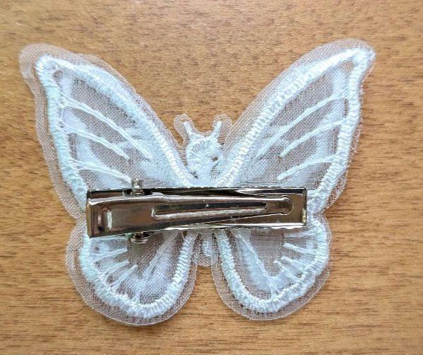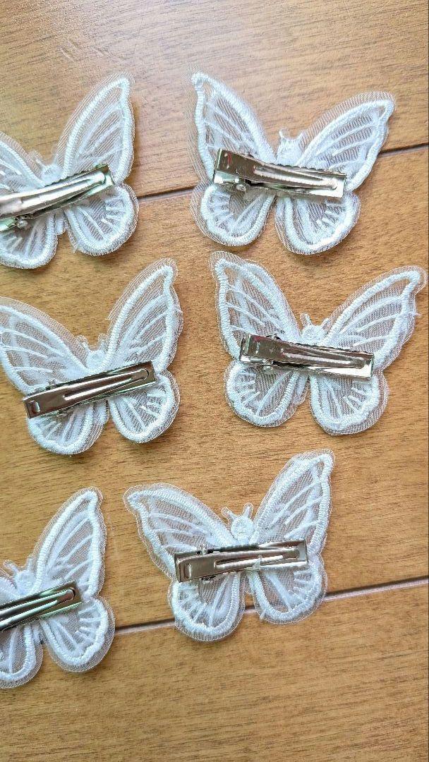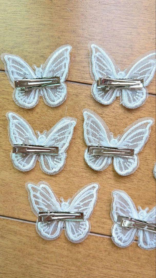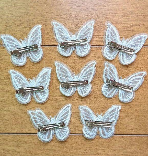 繊細なレースの刺繍が美しい蝶のヘアクリップ(ホワイト)8個セットです。結婚式や発表会等の特別な日はもちろん、普段のおしゃれにも使いやすいアイテムです♪