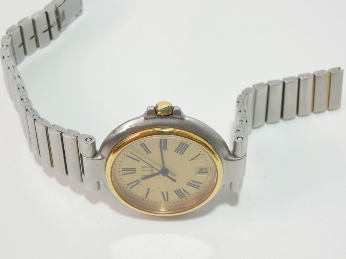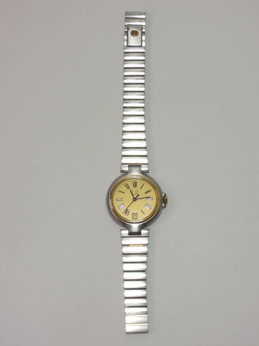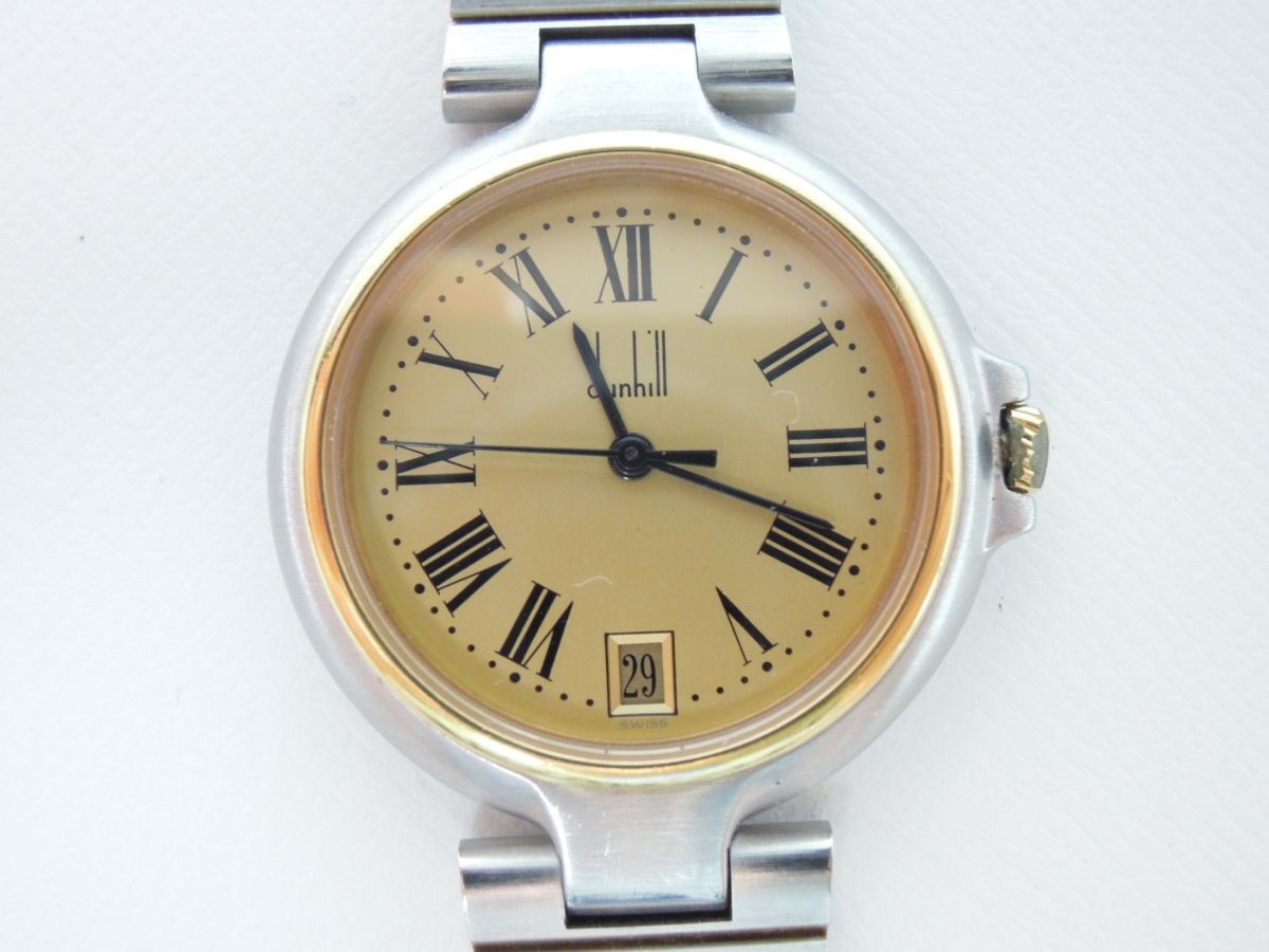 動作品 DUNHILL ダンヒル ミレニアム ゴールド文字盤 ローマン デイト クオーツ 腕時計 ベルト要修理
