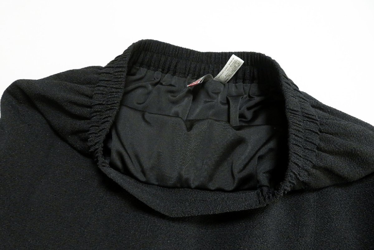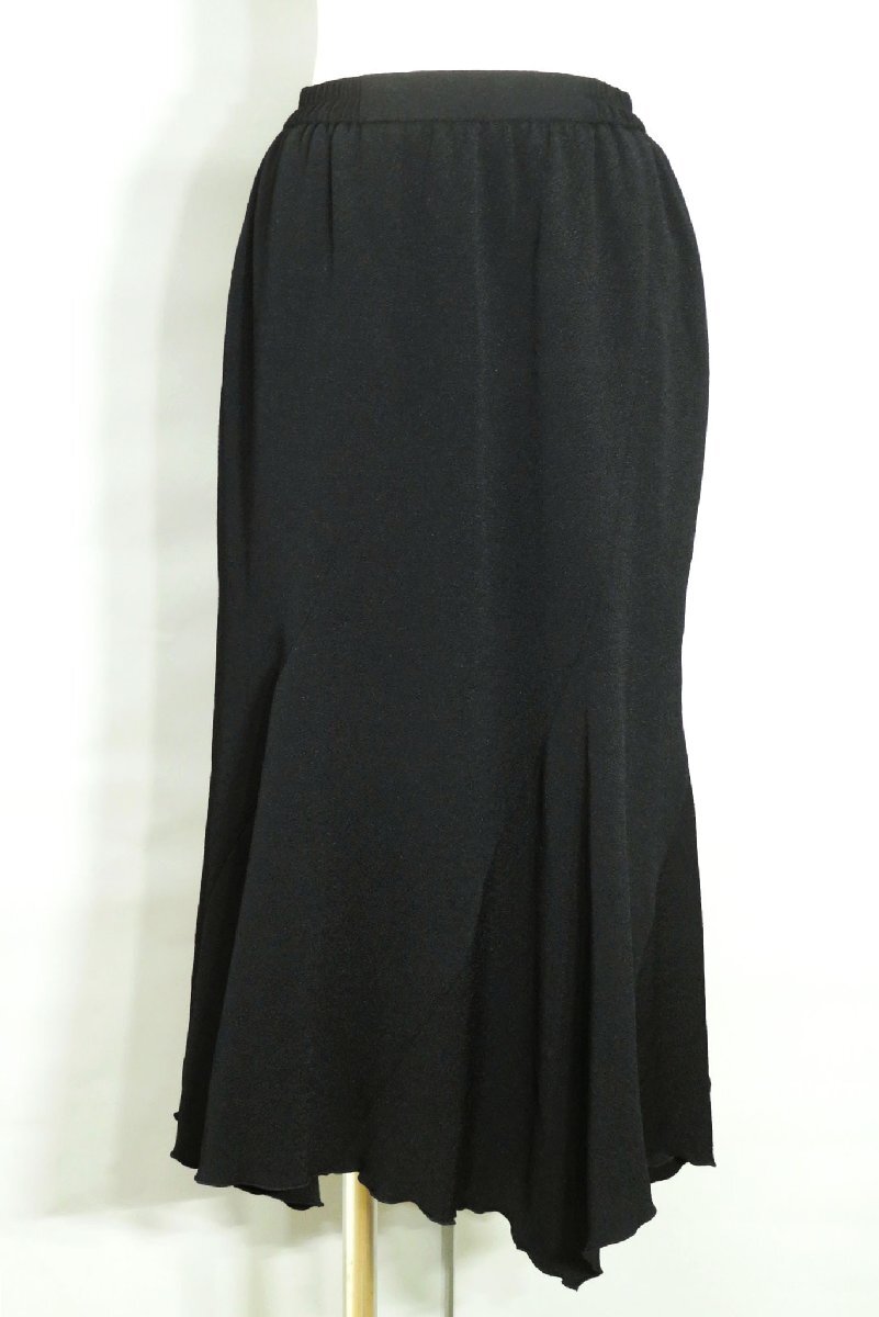 ☆美品☆詩仙堂/洗えるちりめん織り無地ウエストゴム変形ロングフレアスカート:黒nl889