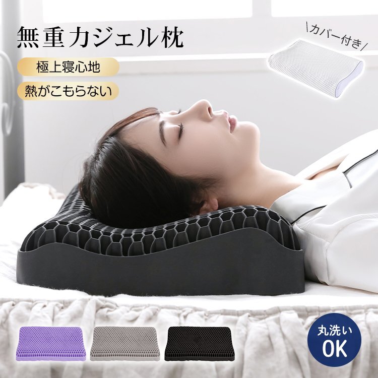 送料無料 無重力ジェル枕 ジェル枕 無重力まくら 無重力枕 枕 まくら クッション カバー付き TPE素材 通気性 格子 柔らかい 洗える in019