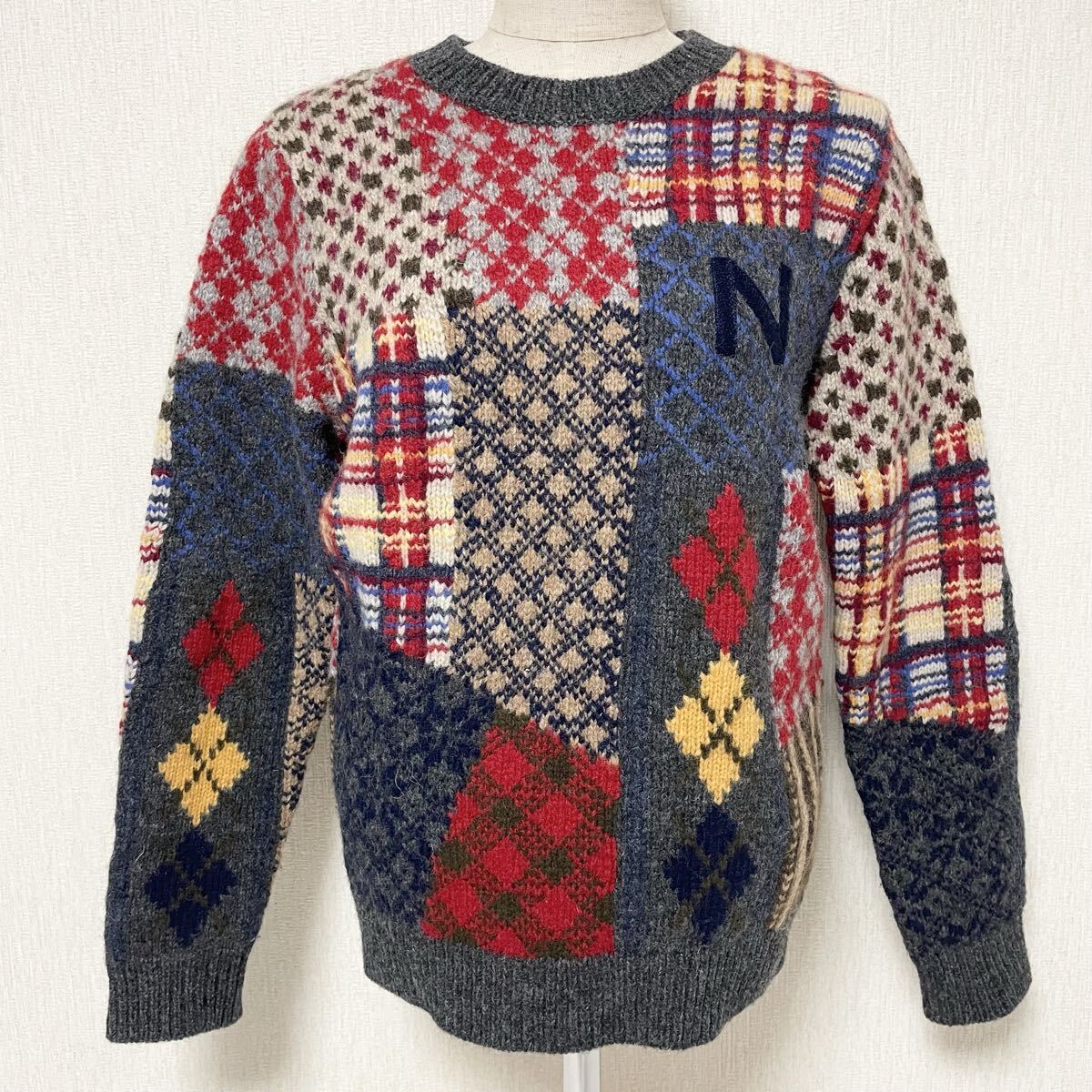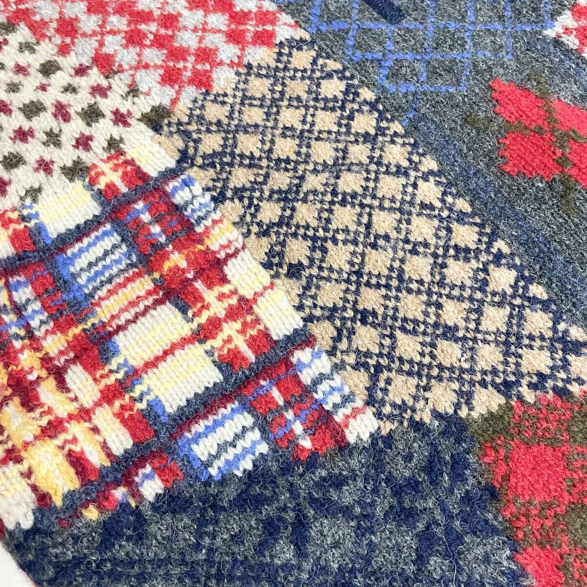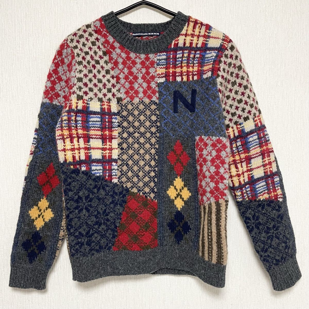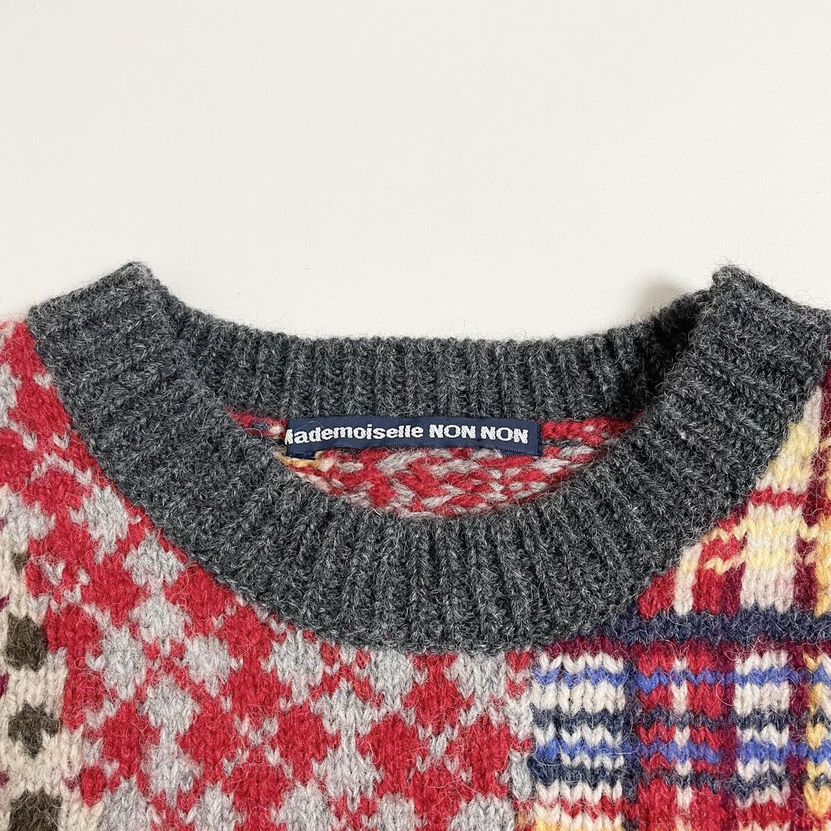 即決☆Mademoiselle NON NON マドモアゼルノンノン パッチワーク ウール ニット セーター 美品 マルチカラー
