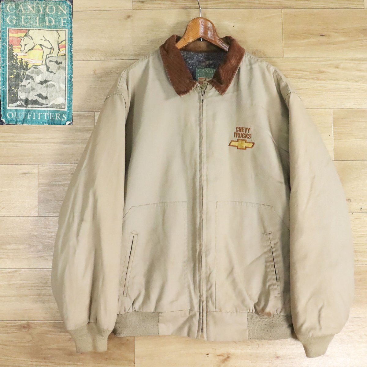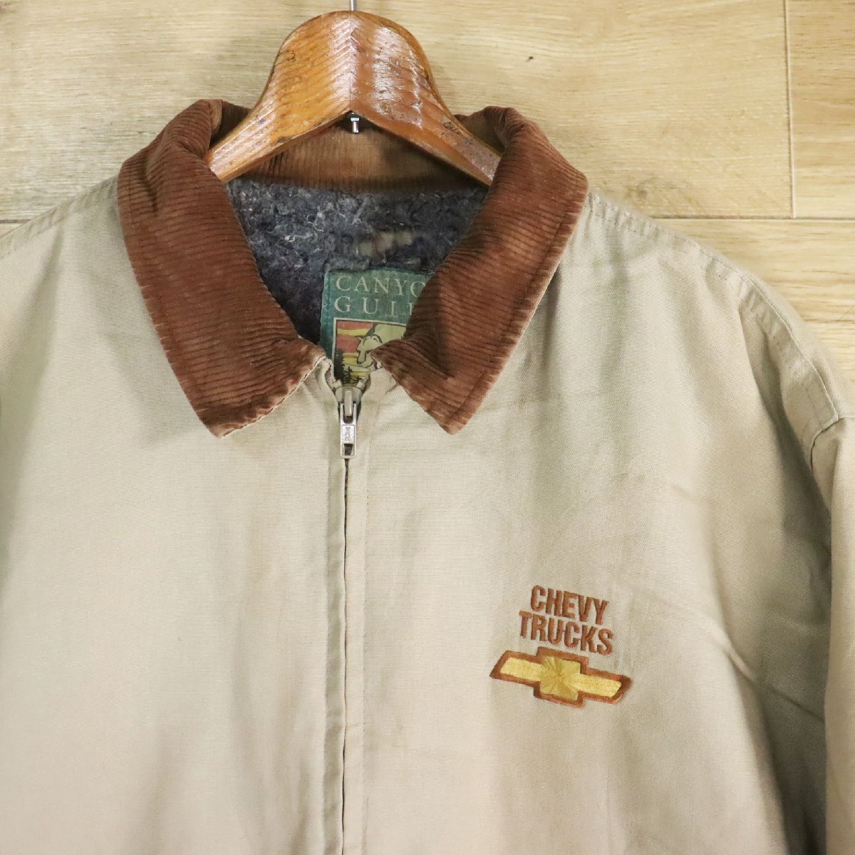 &4Y/Y8.8-2 USA製 CANYON GUIDE キャニオンガイド ワークジャケット 襟コーデュロイ 企業刺繍 裏地ブランケット XL アメリカ古着