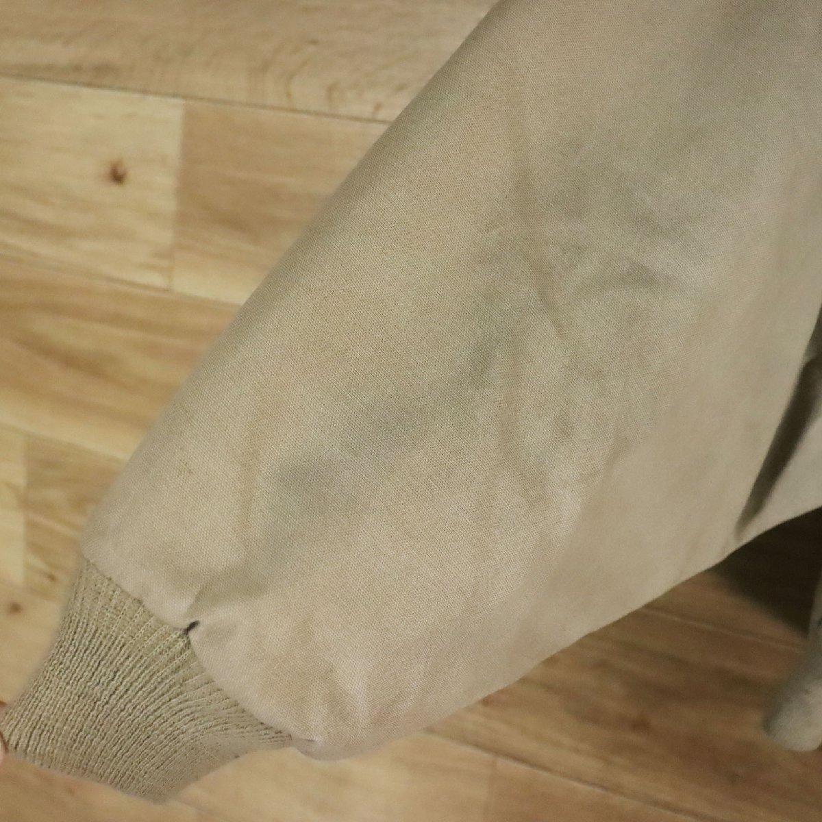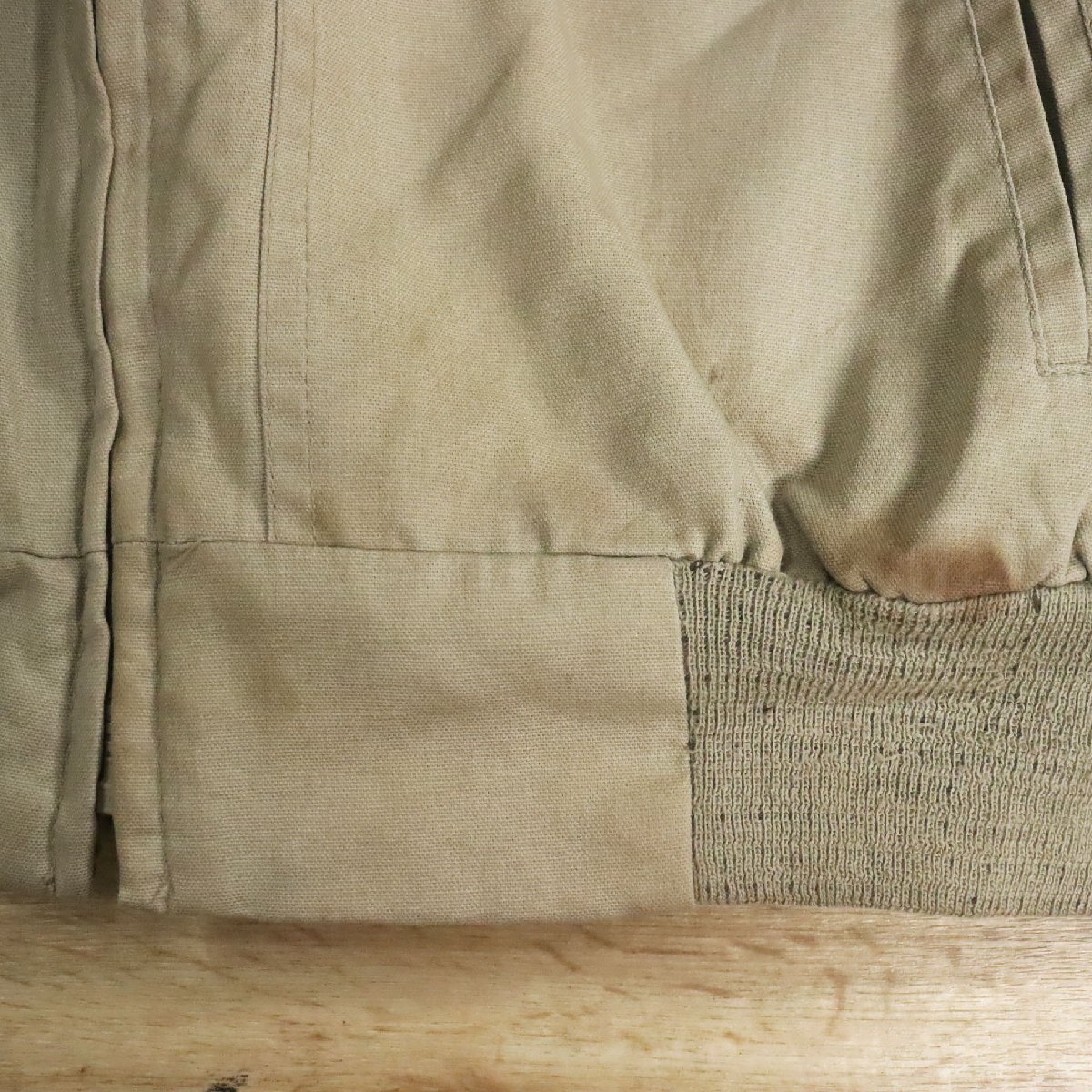 中古品です。使用感があります。全体的に薄汚れ、襟に擦れ、裏地に小さい破れ、袖裏に細かい擦れと毛玉があります。