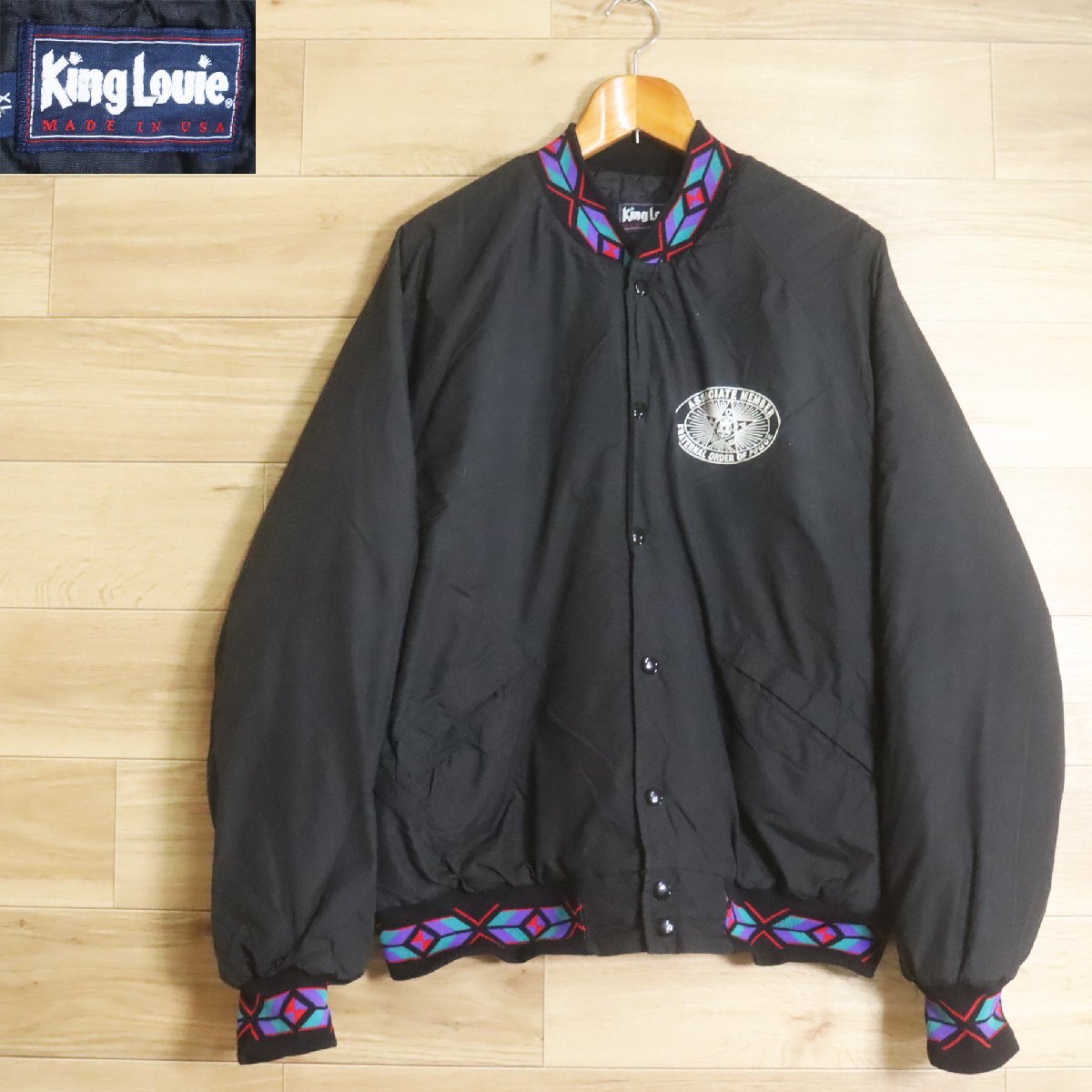 W2K/R7.15-9 90s USA製 King Louie キングルイ ネイティブ柄 ブルゾン スタジャン スタジアムジャンパー メンズ XL