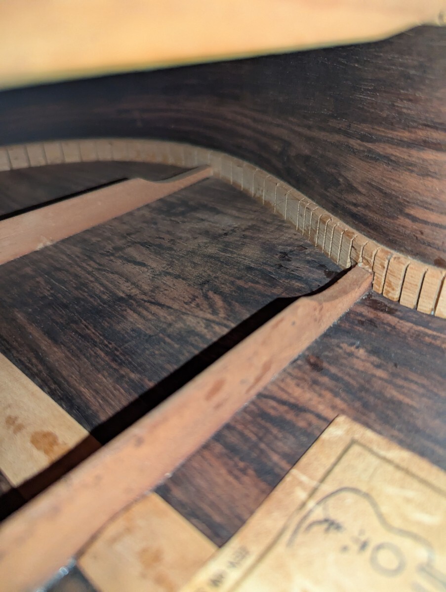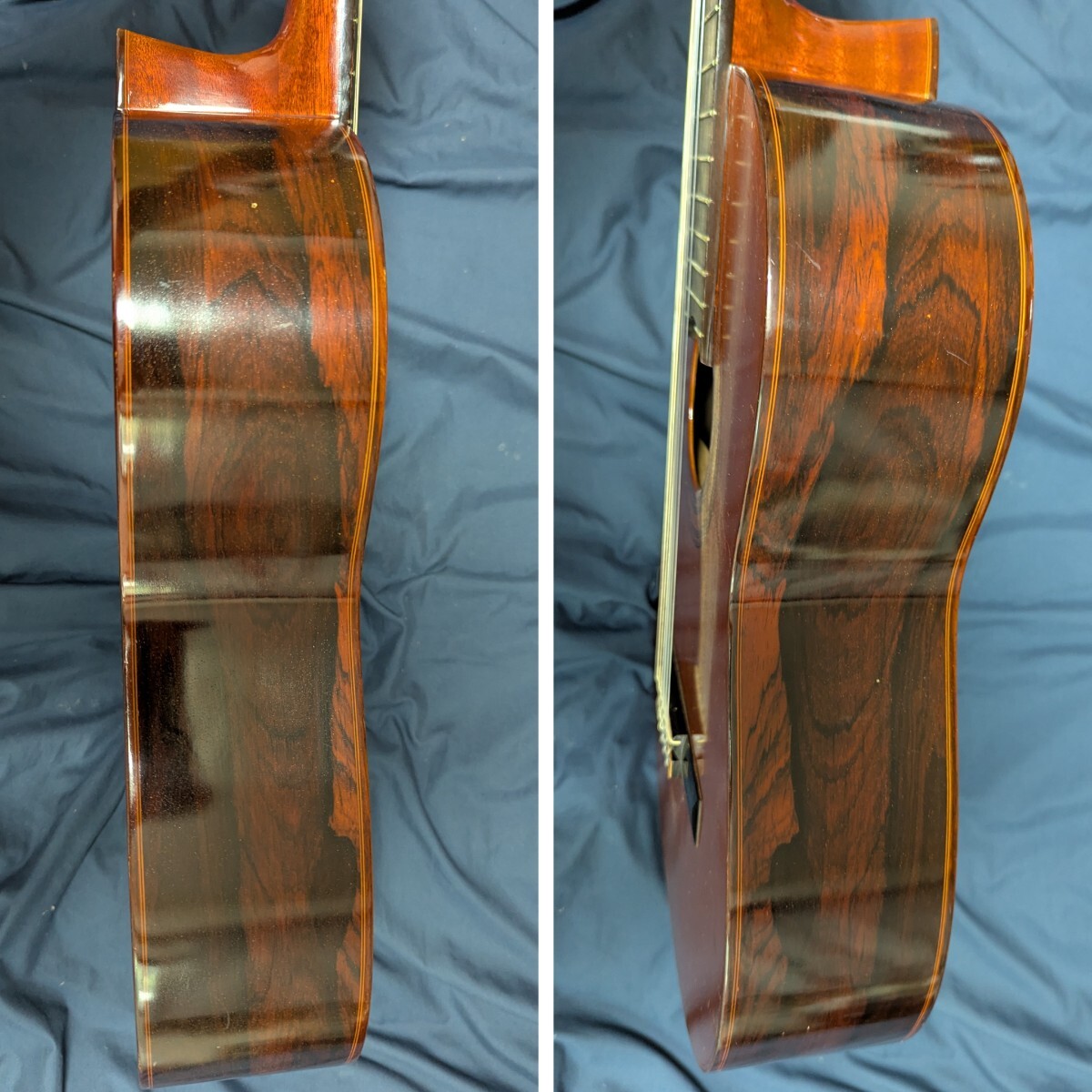 トップは、単板になりますがサイド、バックは、突板のハカランダになると思います。