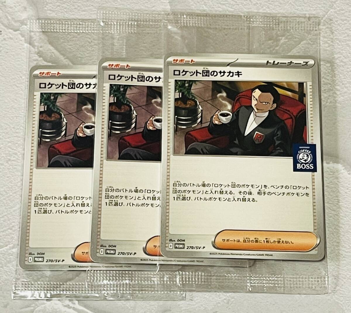ロケット団のサカキ サントリーBOSS プロモカードパック 3枚セットになります。