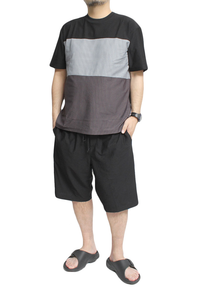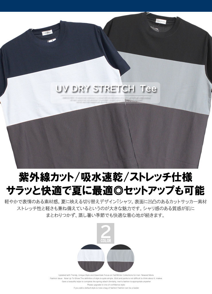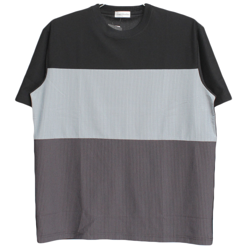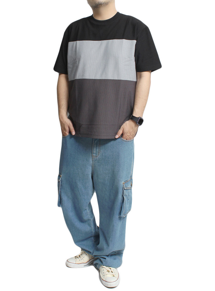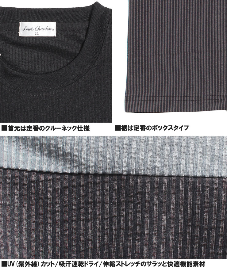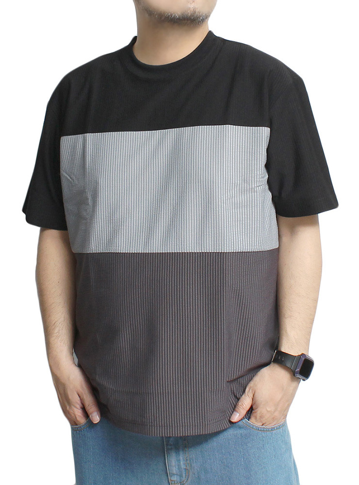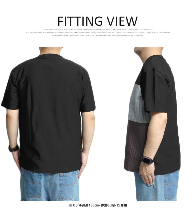 商品名 | 【新品】 5L ブラック 半袖 Tシャツ メンズ 大きいサイズ カットサッカー ドライ 切替デザイン クルーネック カットソー |