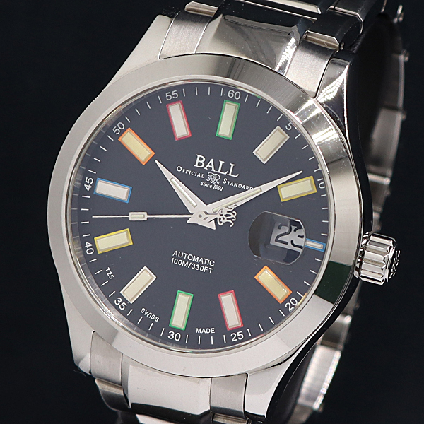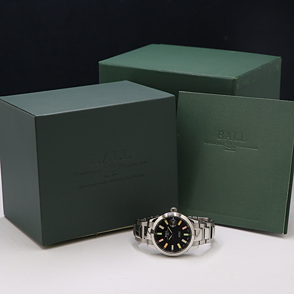 1円 箱付 稼働 良品 ボールウォッチ AT ブラック文字盤 904L メンズ腕時計 0807510 9GTT KMR