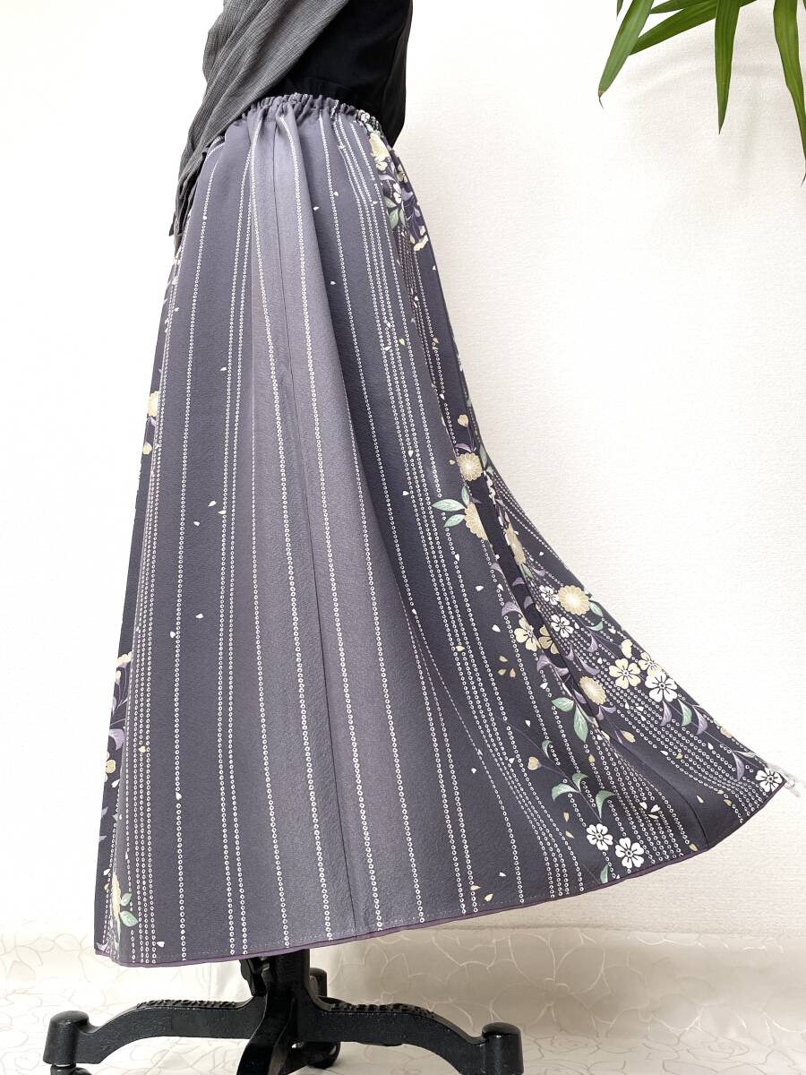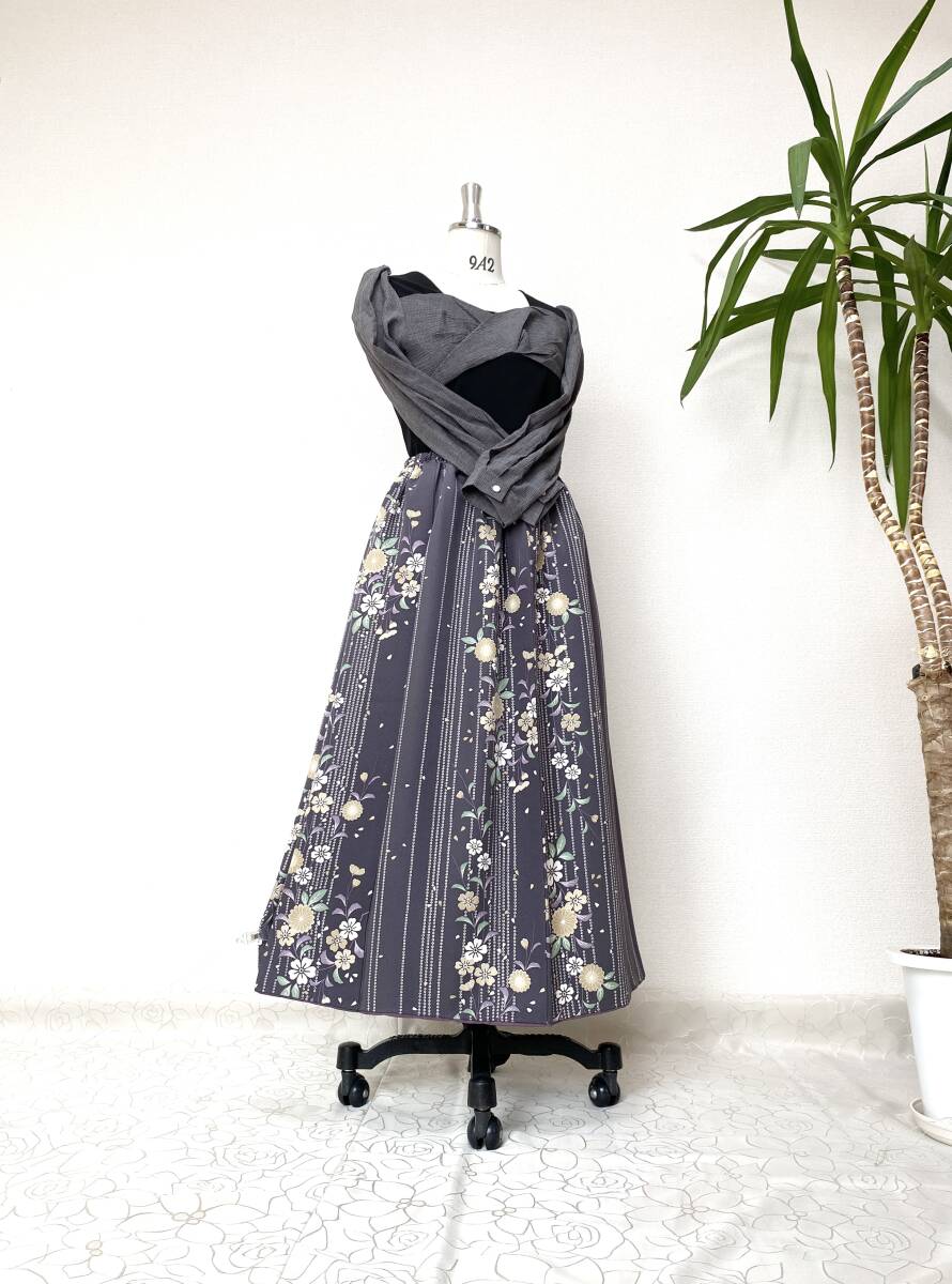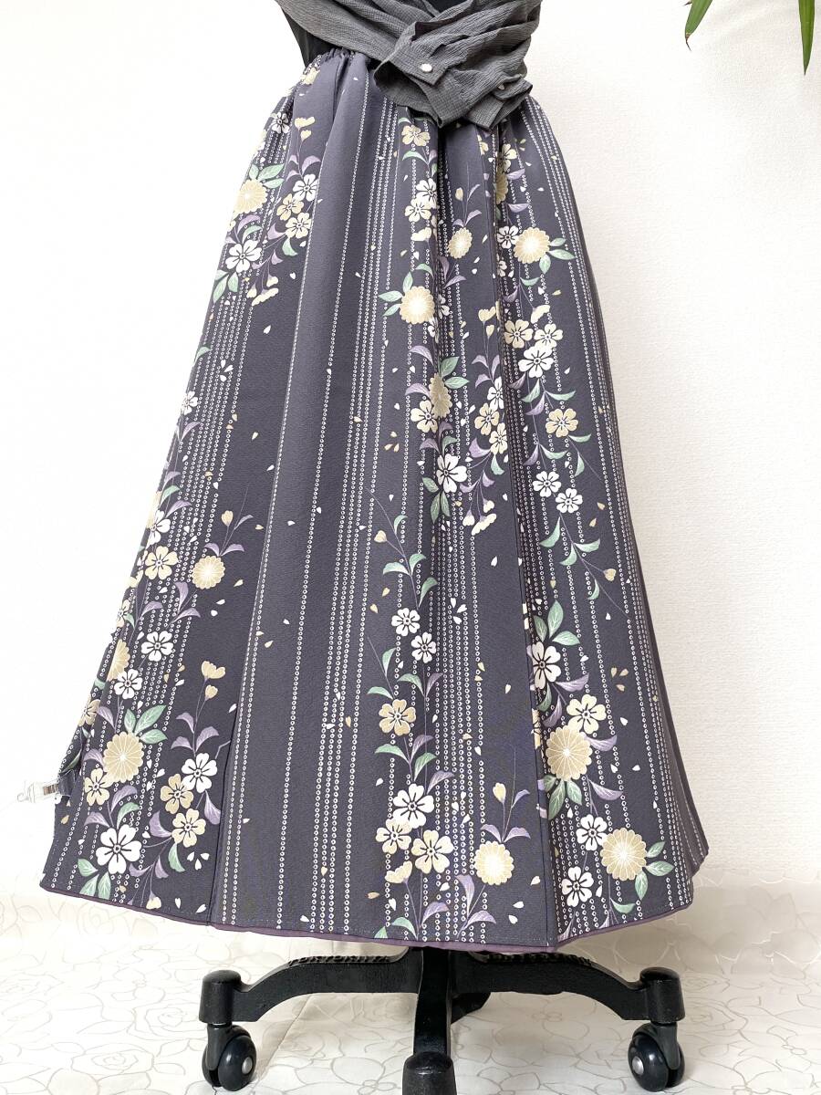 着物をリメイクして作製したウエストゴムロングドレススカートフリーサイズです
