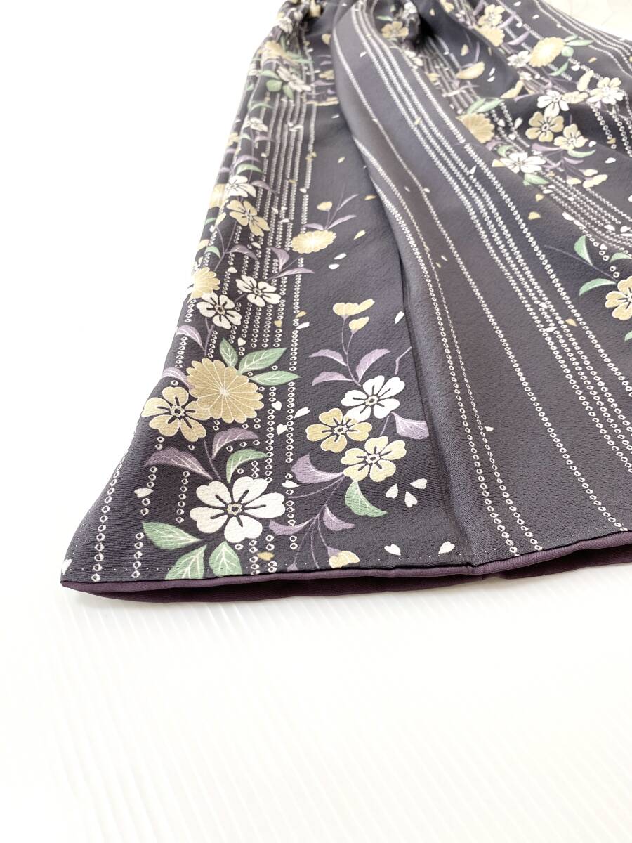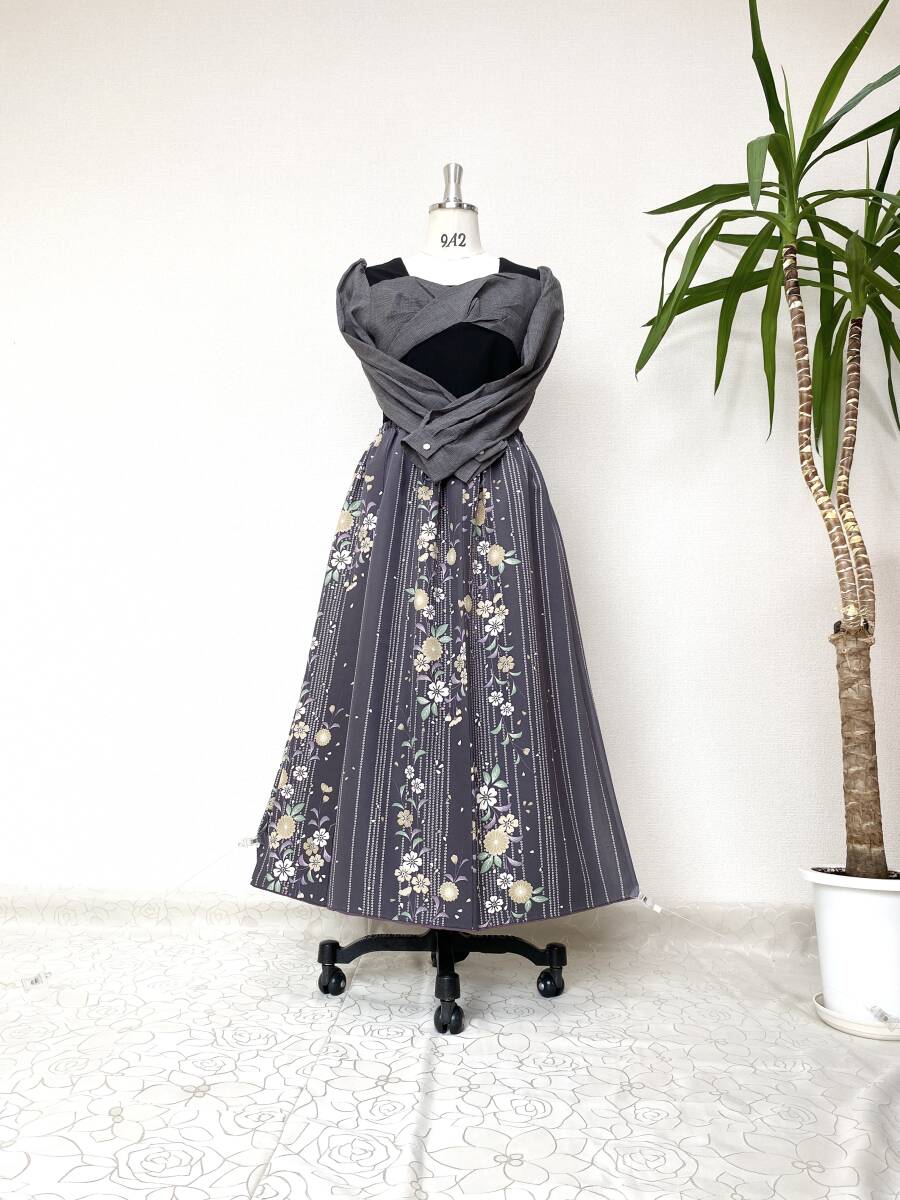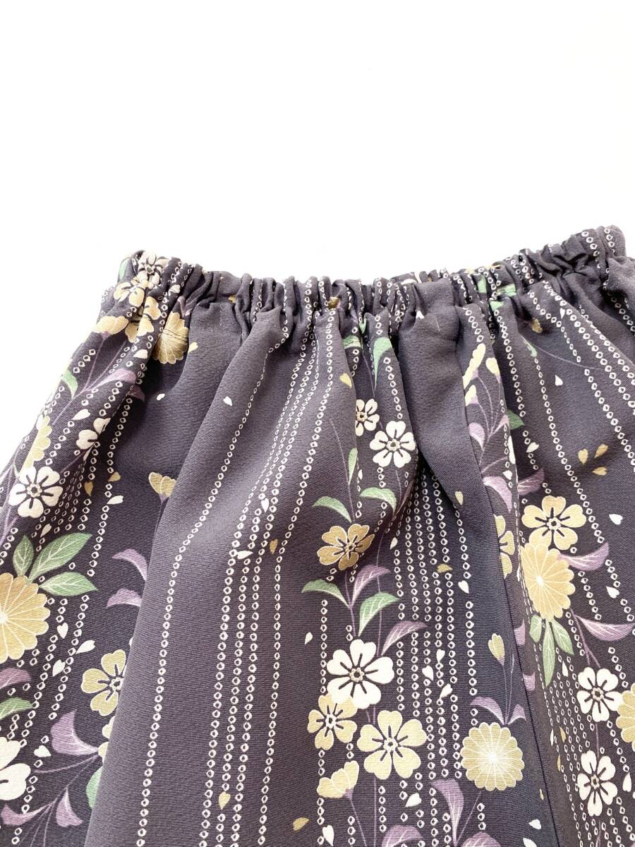 着物をリメイクして作製したウエストゴムロングドレススカートフリーサイズです