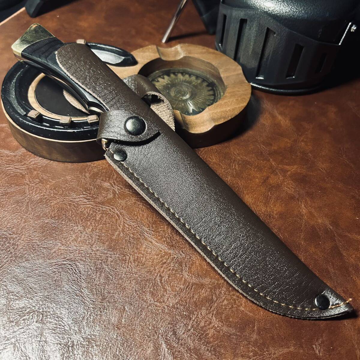 超高品質アウトドアナイフ 鋼製鏡面 薪割り 革製シース付き キャンプ サバイバル ハイキング 野外登山 25cm 192g