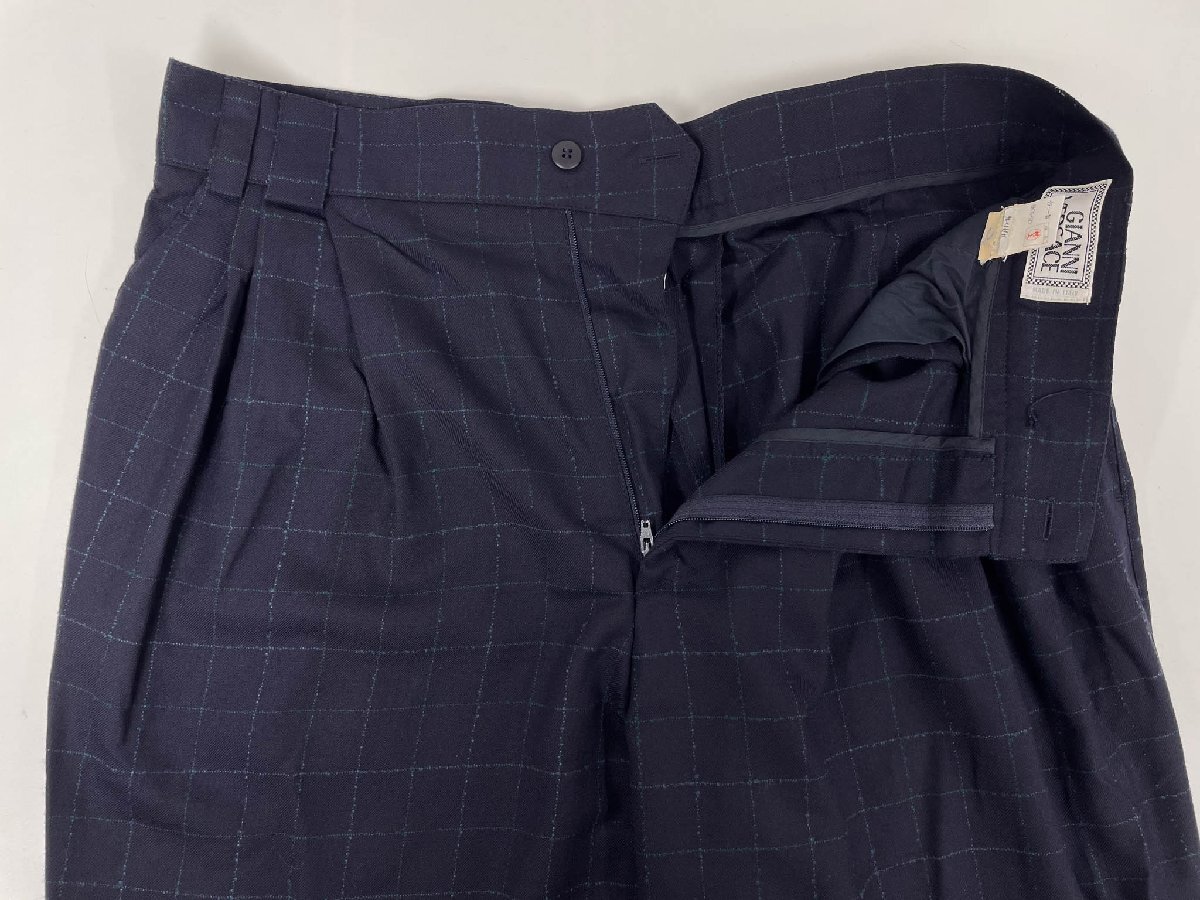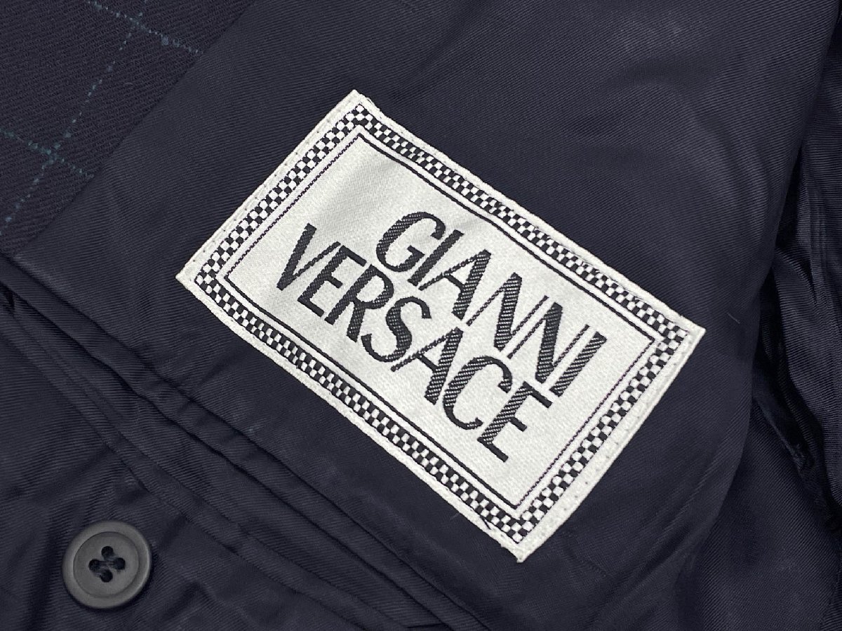 美品【GIANNI VERSACE ジャンニヴェルサーチ】シングル1ボタン 格子柄 スーツ (メンズ) size52 ネイビー系 イタリア製 ◇35RMS2561◇