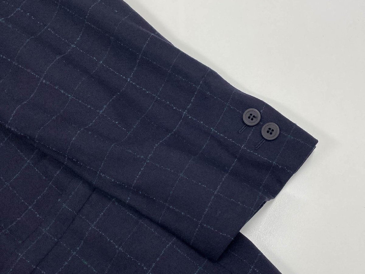 ・ジャケット・・・着丈(襟下から背中心で)約80センチ、身幅約62~63センチ、肩幅(直線で)約49センチ、袖丈約67センチ、ウエスト幅(第1ボタン上付近で)約56~57センチ