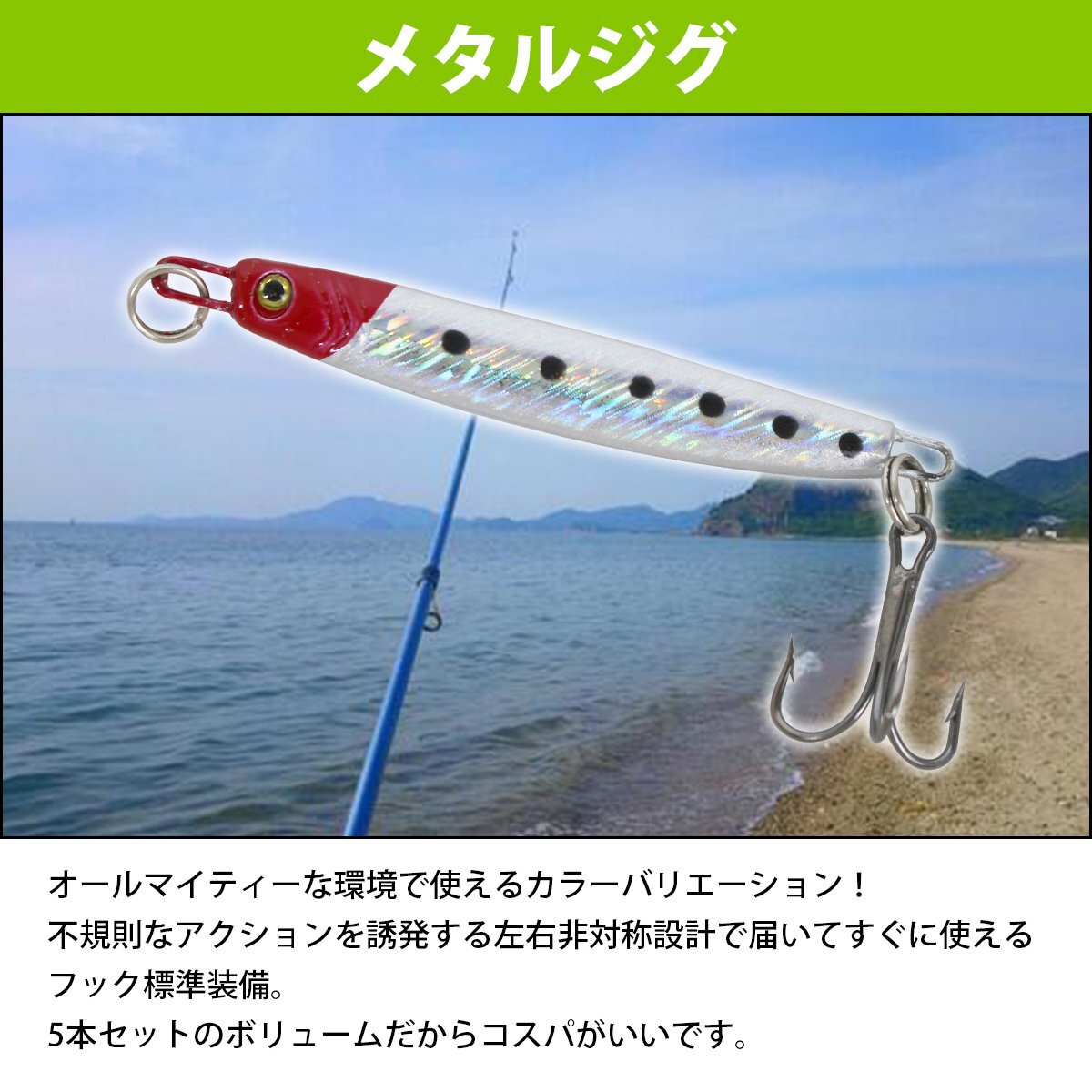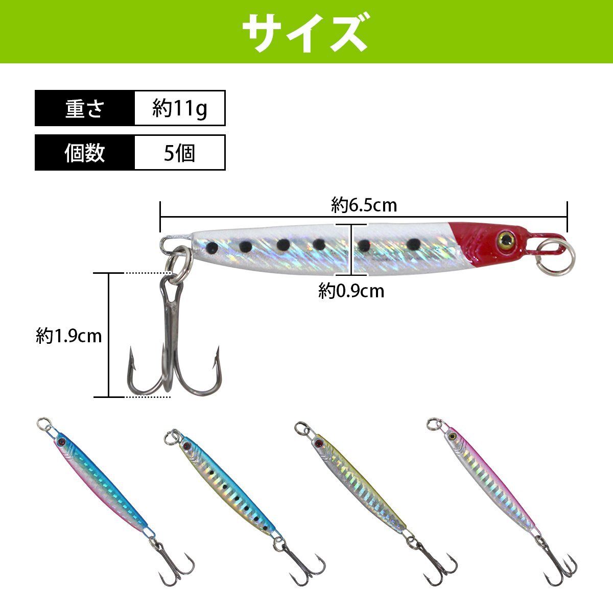 メタルジグ 5個セット ルアーセット 65mm/6.5cm ジギング ルアー フィッシング ジグ 11g 疑似餌 シーバス ヒラメ サバ 鯖 など