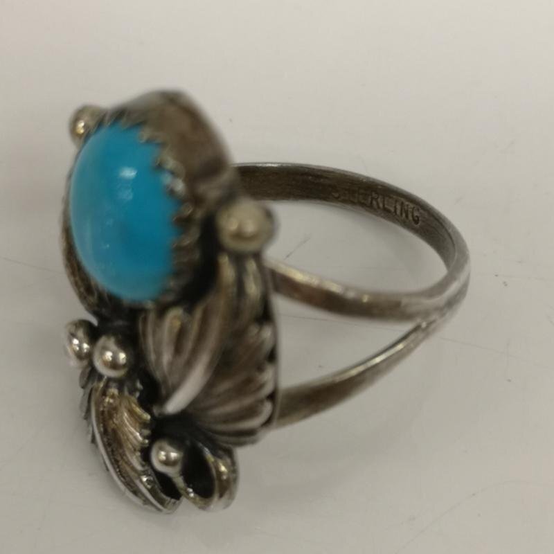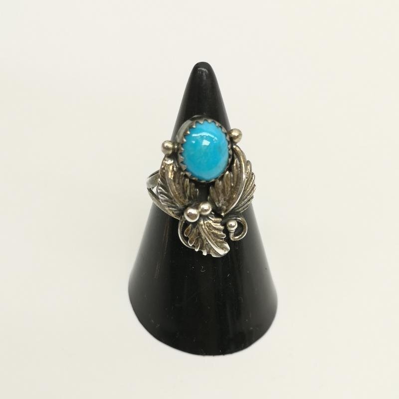 インディアンジュエリー シルバー リング ターコイズ 装飾 指輪 4号 -