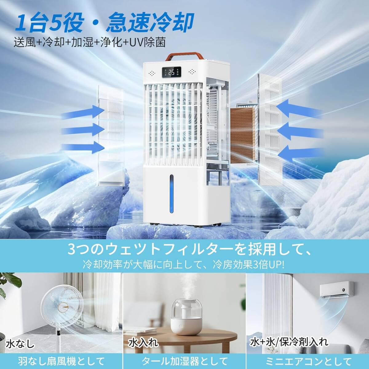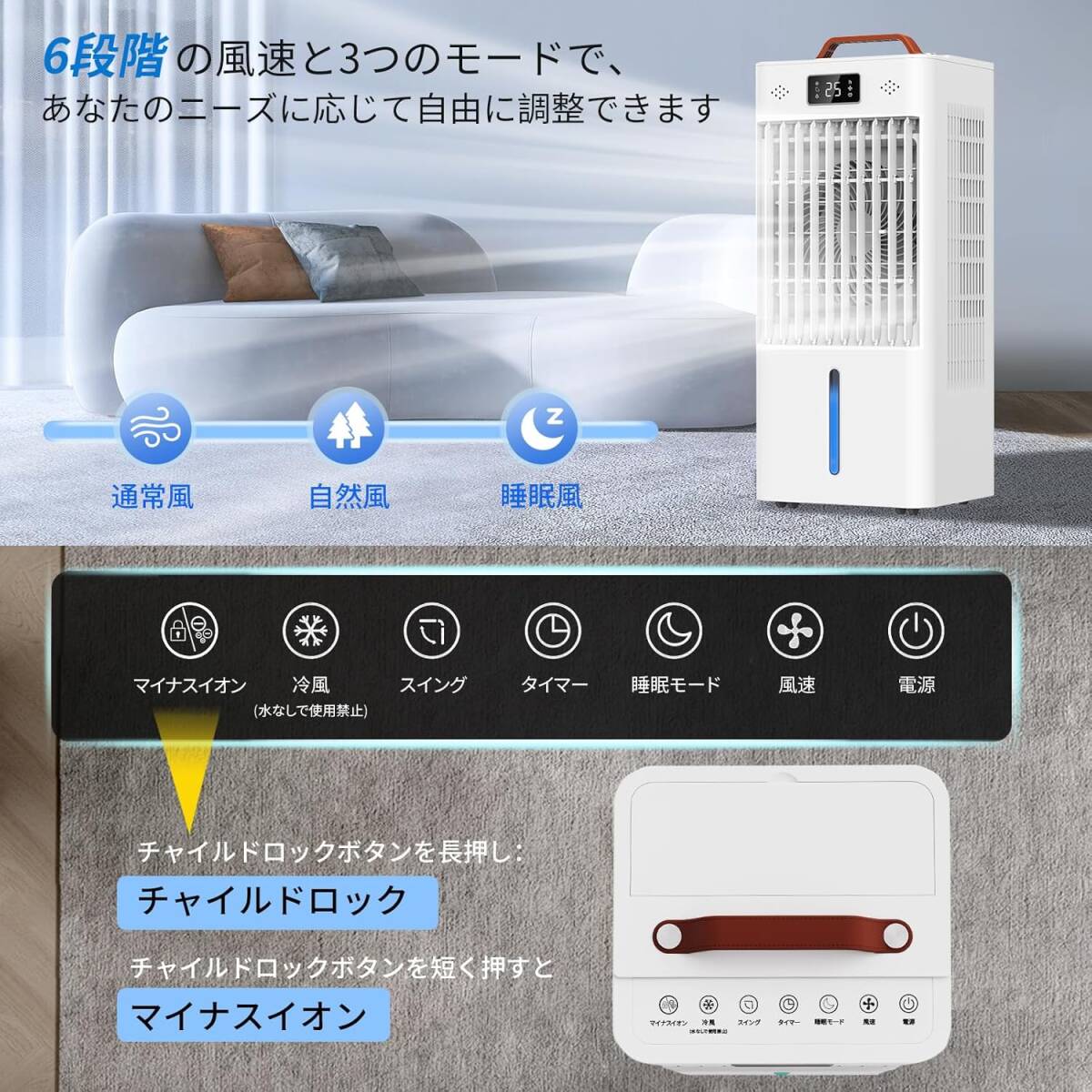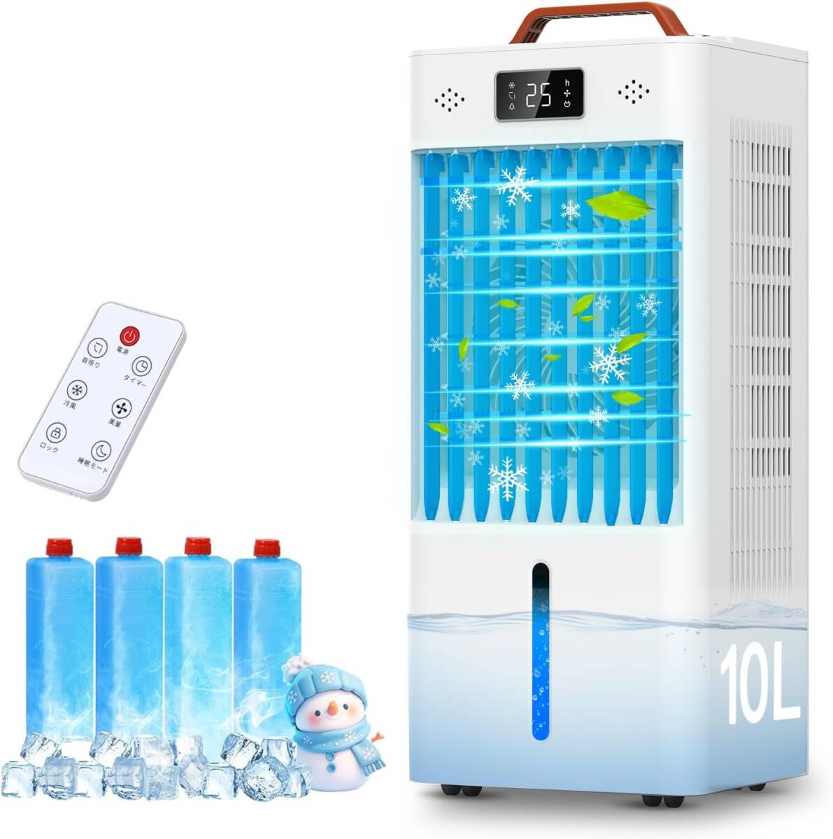 パッケージ内容:冷風扇本体×1、リモコン×1、キャスター×4、日本語取扱説明書×1、使用ガイドライン×1、保冷剤パック×6。L146