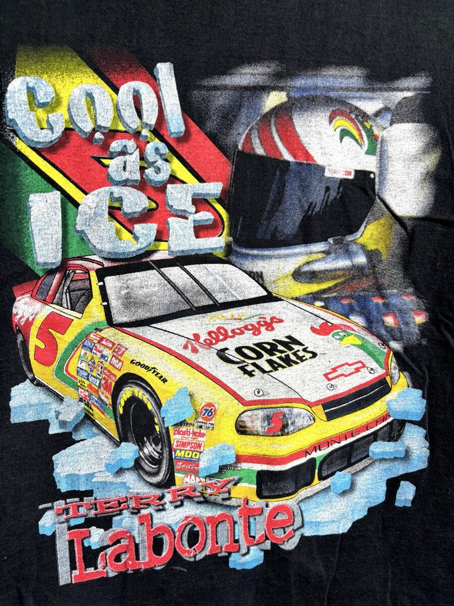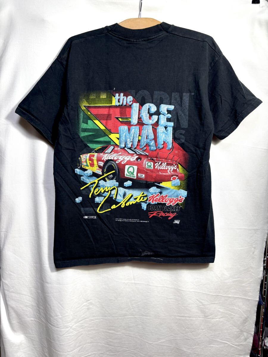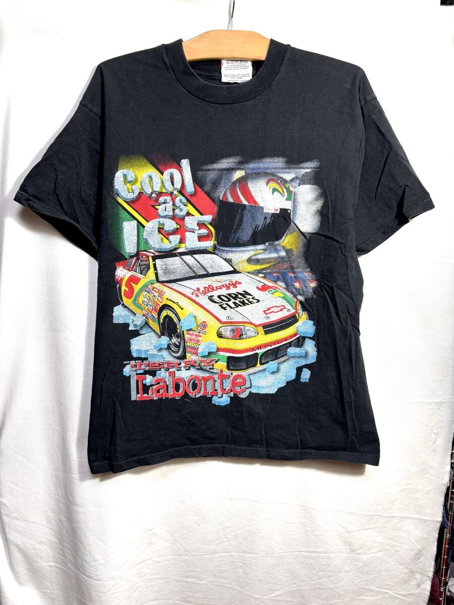 ■ 90s 90年代 ビンテージ NASCAR ナスカー テリー・ラボンテ レーシング 両面 プリント Tシャツ 黒 L Y2K モータースポーツ ケロッグ ■