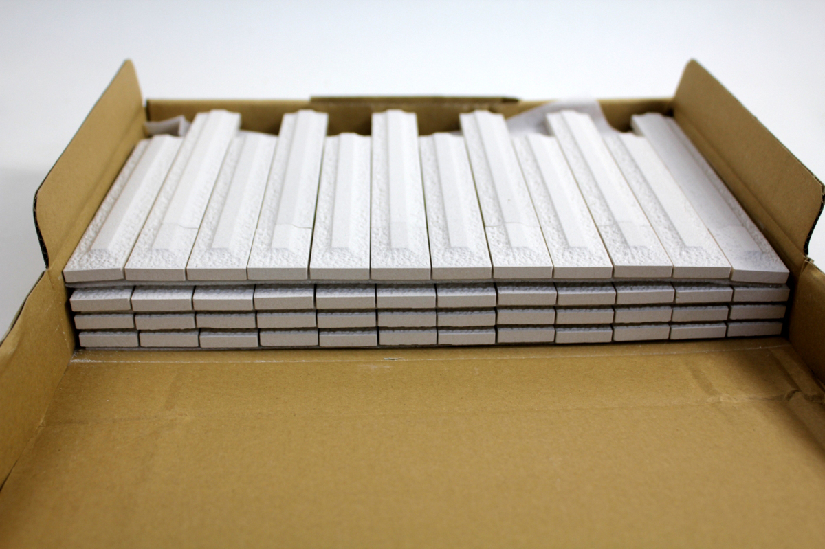 ▼商品名 | [未使用品 4枚入り] LIXIL エコカラット Gシリーズ グラナスライン 壁材 ECO-2515N1/GLN1NN ホワイト 25×151角片面小端施釉(短辺)ネット張り |