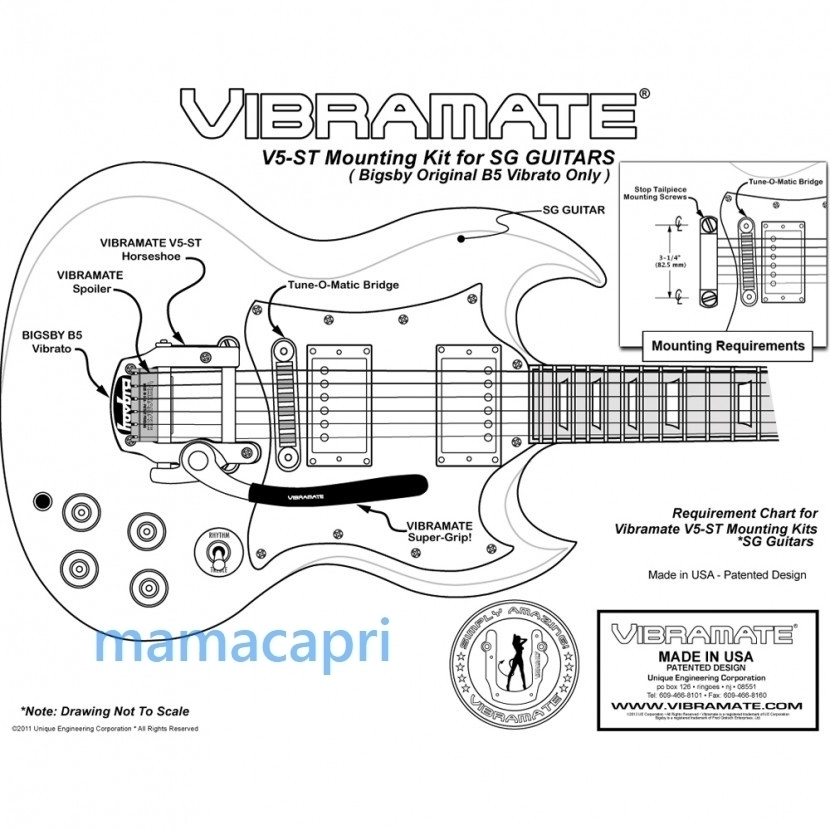 Vibramate ST Short-Tail V5 Mounting Kit BIGSBY Vibratos Adaptor Kit Bigsby B5用 |