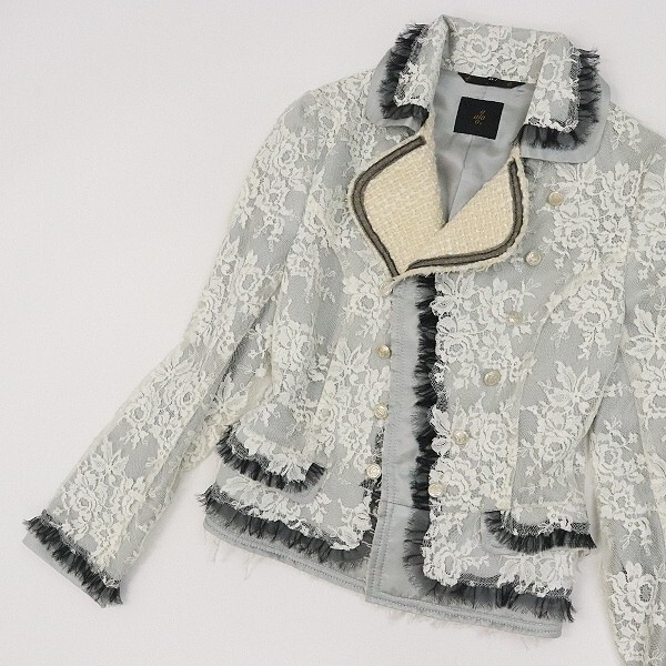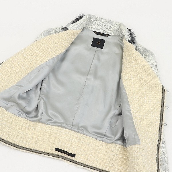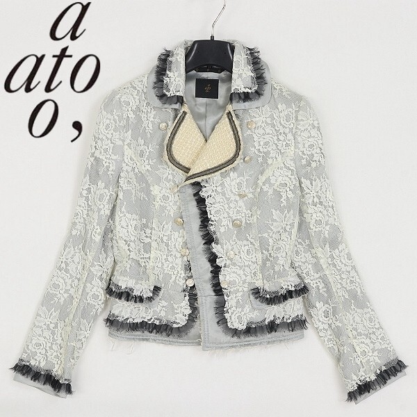 【HA555】◆ato アトウ modeled by Kiyoshi yoneno 花柄レース ツイード使い 異素材 切替 メタルボタン ジャケット 36 | |