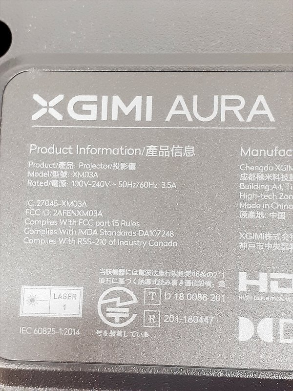 名 称 | エクスジミー XGIMI 超短焦点レーザープロジェクター AURA XGIMI XM03A 本体サイズ(幅×高さ×奥行)606.0mm×139.5mm×401.0mm | ||