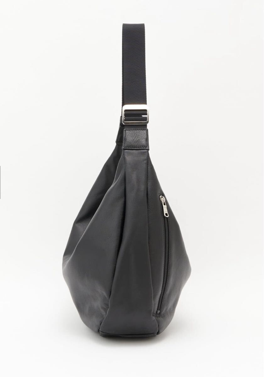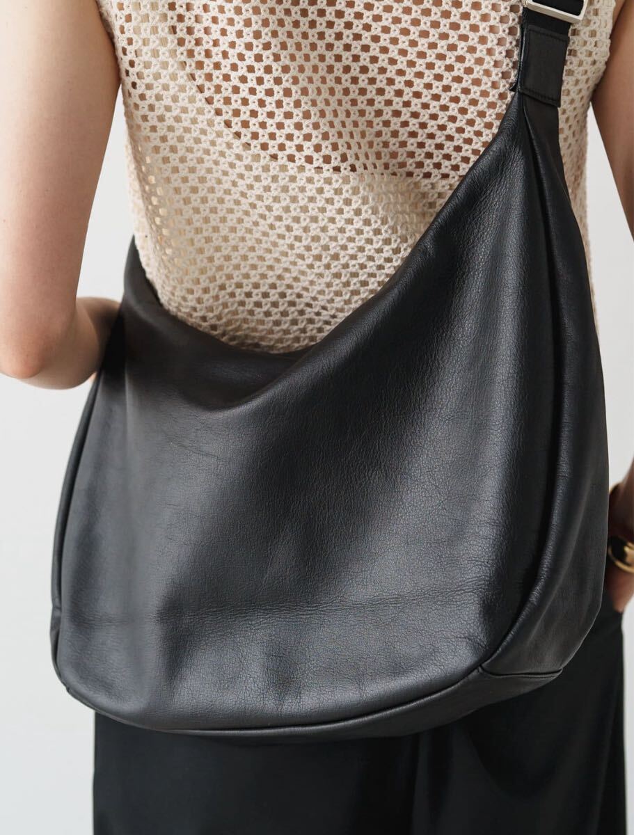 大容量でもソフトレザー素材でくたっとなり体にフィットしやすいアイテム。