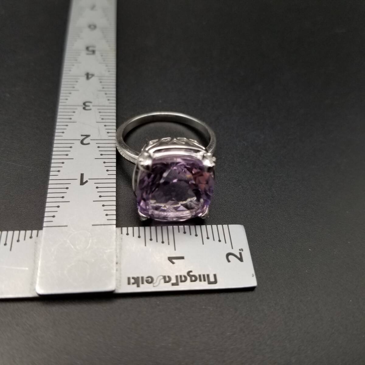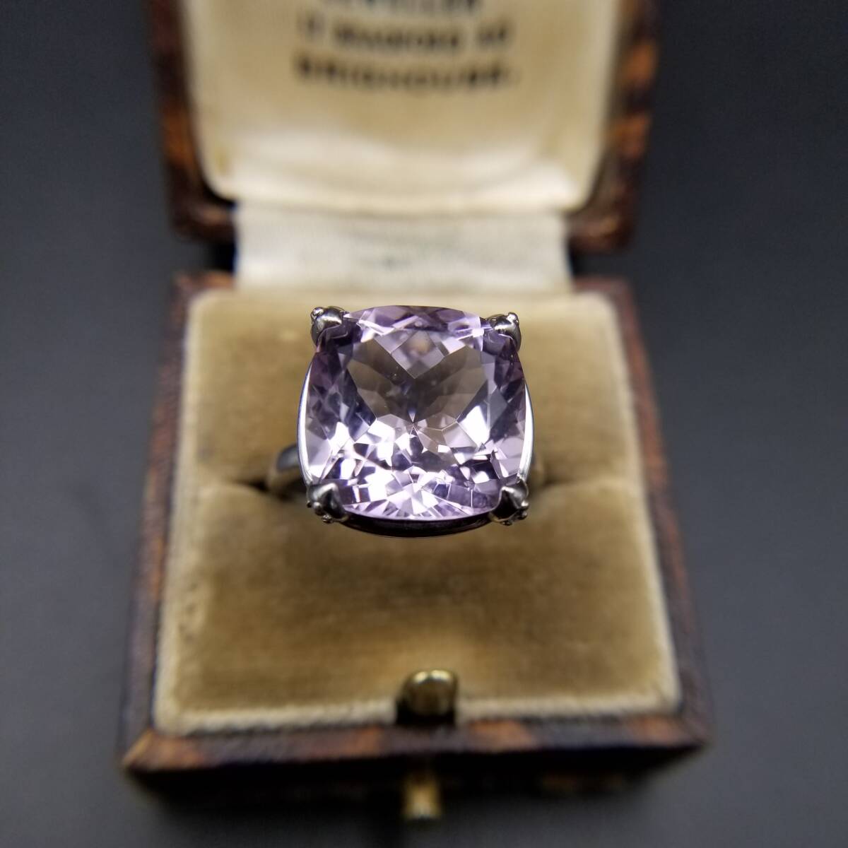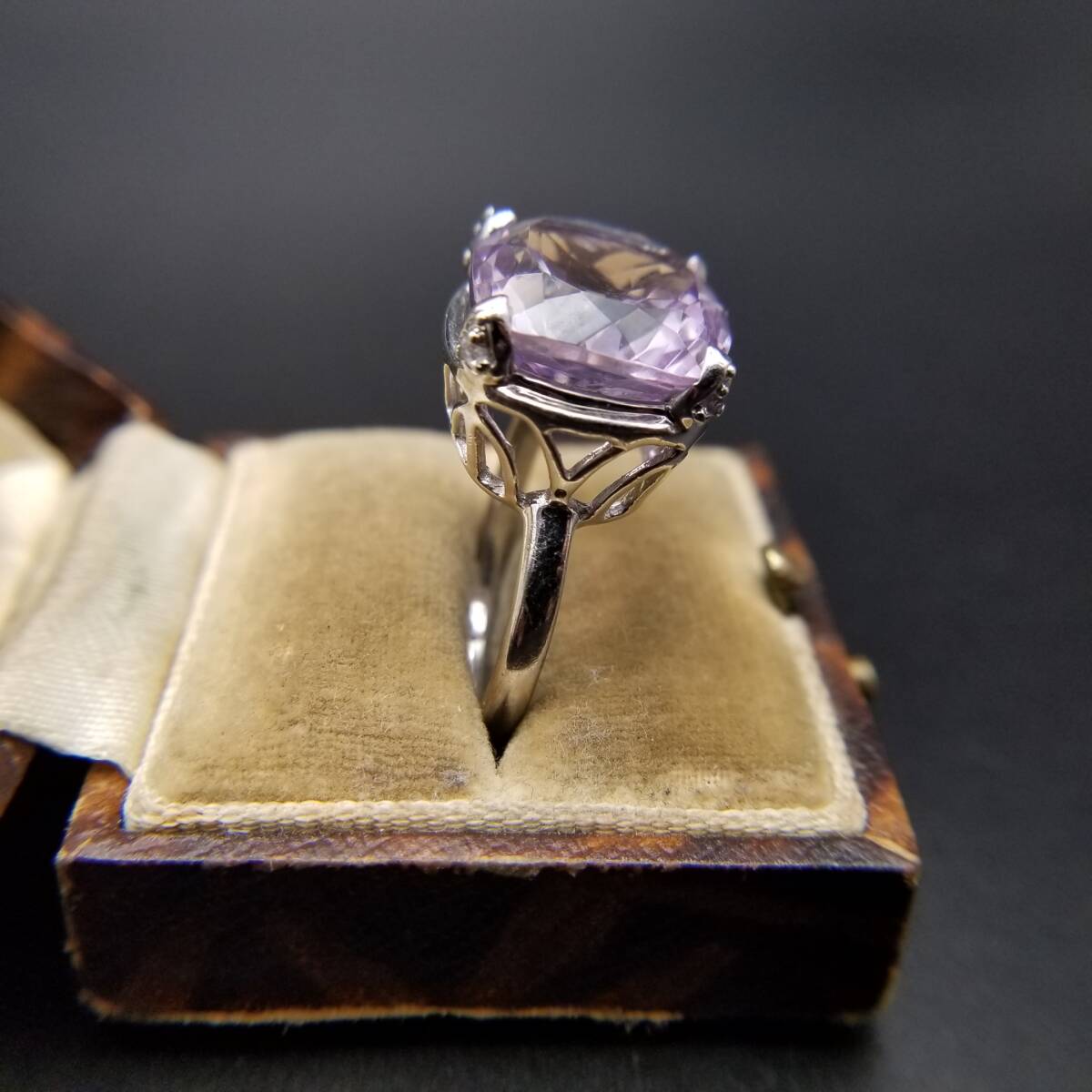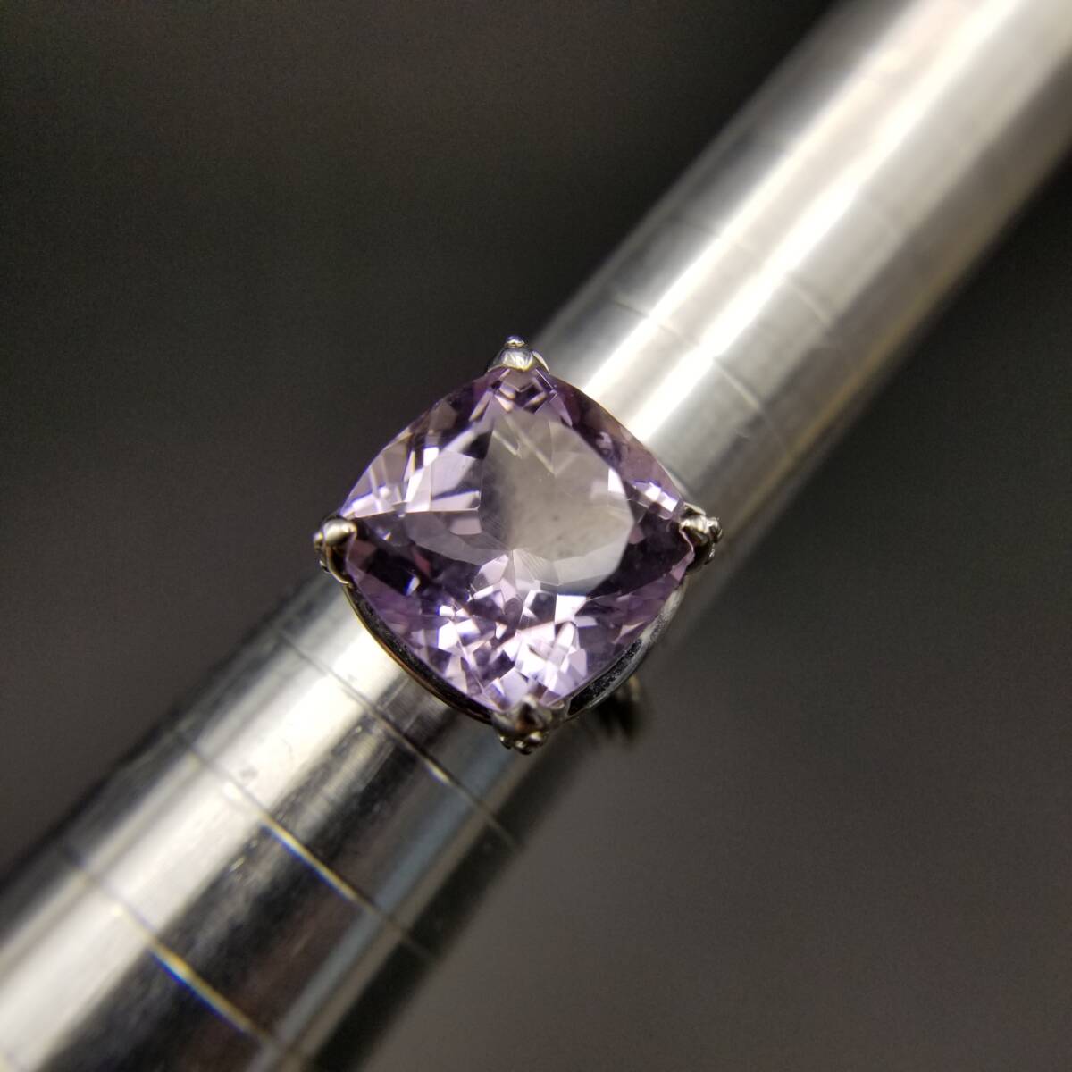 大粒 アメジストカラー クッションカット 925 シルバー ヴィンテージ リング 指輪 銀 綺麗な紫色 ゴージャス エレガント 存在感 R16-R