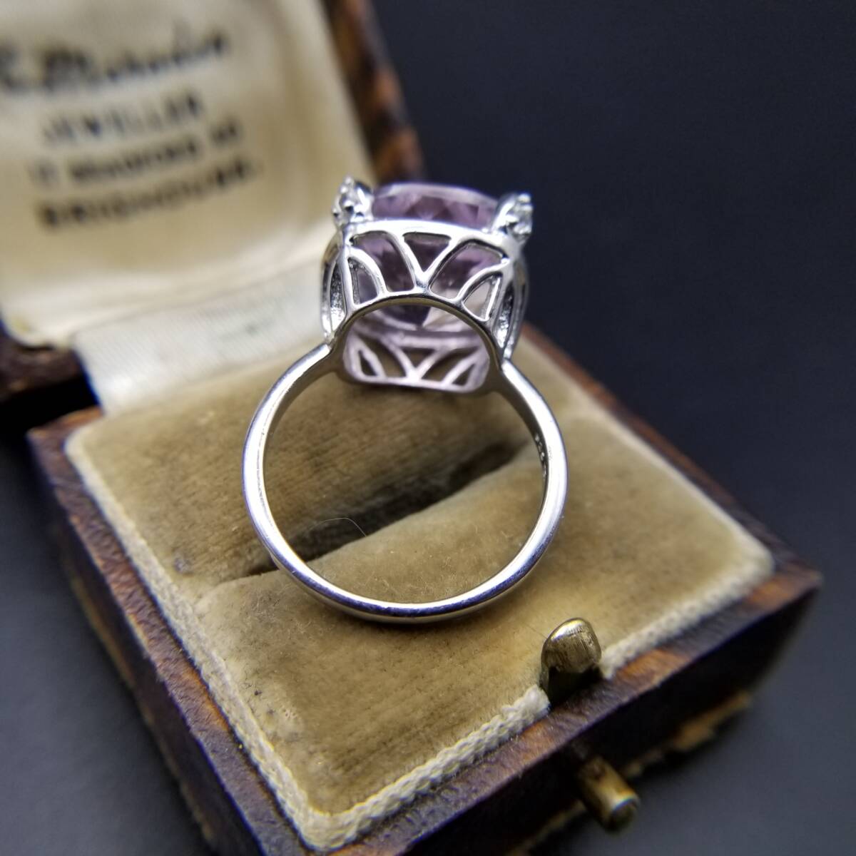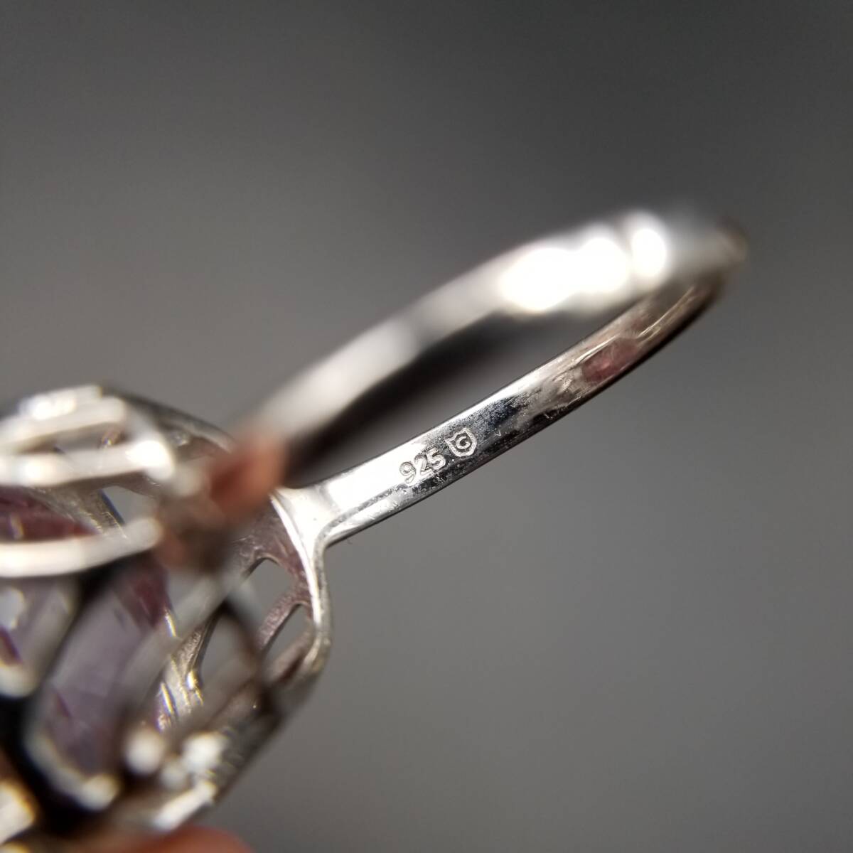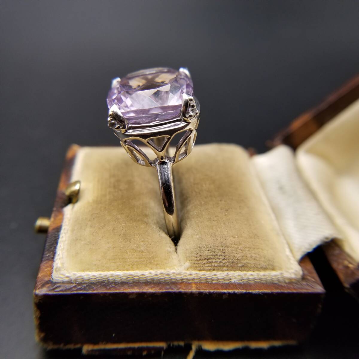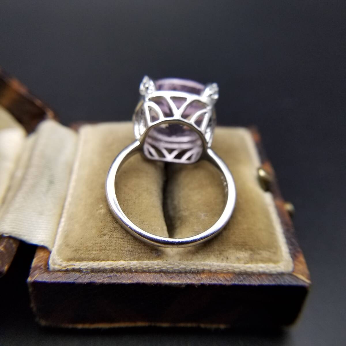大粒 アメジストカラー クッションカット 925 シルバー ヴィンテージ リング 指輪 銀 綺麗な紫色 ゴージャス エレガント 存在感 R16-R