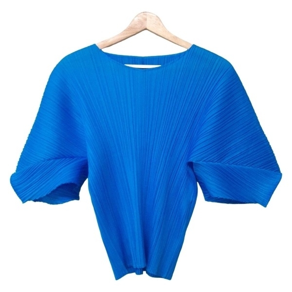 プリーツプリーズ PLEATS PLEASE 七分袖カットソー - ブルー レディース クルーネック/プリーツ 美品 トップス