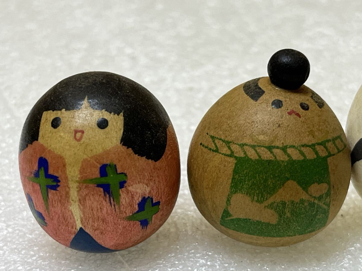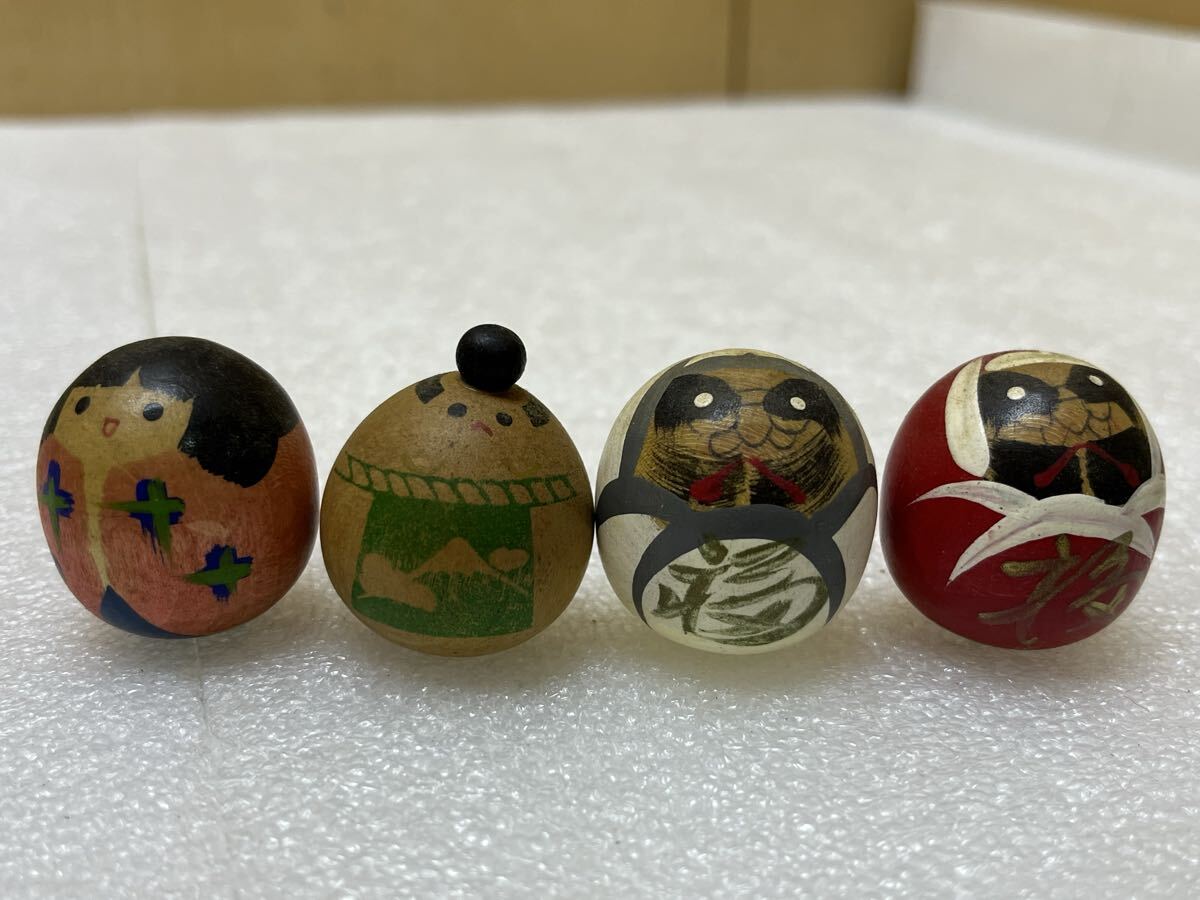 RE7637 可愛い伝統的な木製こけし ミニダルマさん 民藝 レトロ 現状品 1002