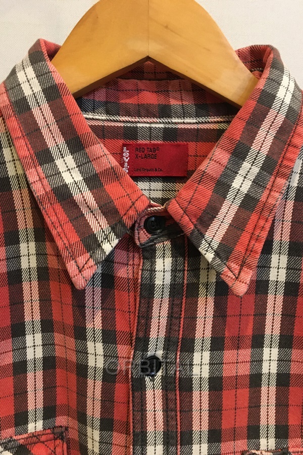 二子玉)Levi's REDTAB リーバイスレッドタブ 00年代 60528-70 ツイルチェックシャツ コットン 赤 アメカジ メンズ XL ※色あせ