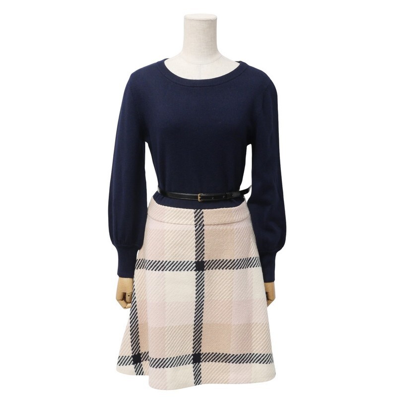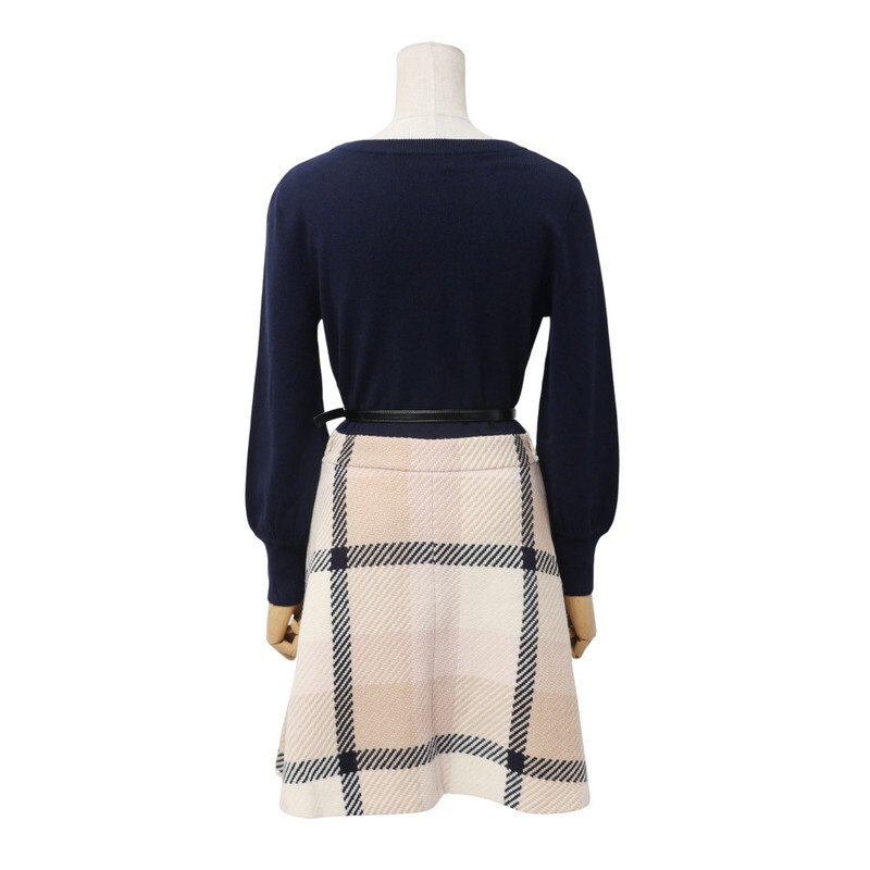 GS0186●ブルーレーベルクレストブリッジ*チェック柄 ドッキング ワンピース *長袖 ニット*ベルト付き*サイズ36 | |||
