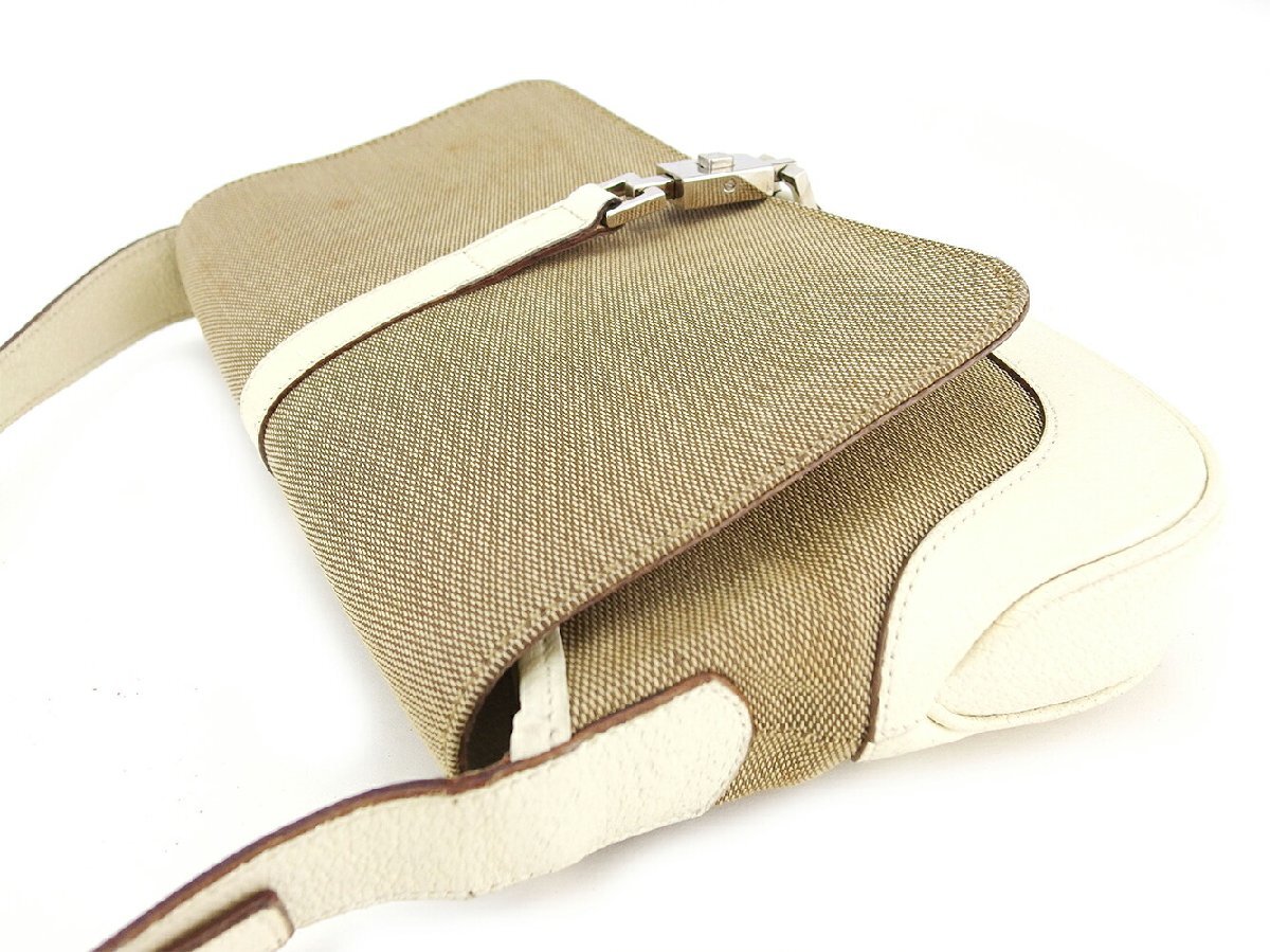 コンディション | 全体の状態詳細:まだまだお使いいただけます。社外リペア跡(ショルダーベルト金具付近内側切れ1ヵ所補強接着)あり。その他 スレ&汚れ(内側&ポケットもあり) シミ(キャンバス) ペン跡(フラップ内側一部) ヒビ割れ小(ショルダー付け根) 金具傷 などの使用感があります。 |