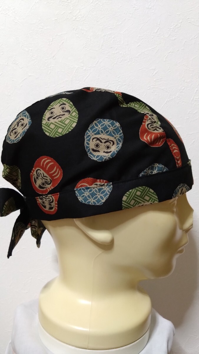 短★バンダナキャップ★ハンドメイド 和柄 だるま ダルマ 黒