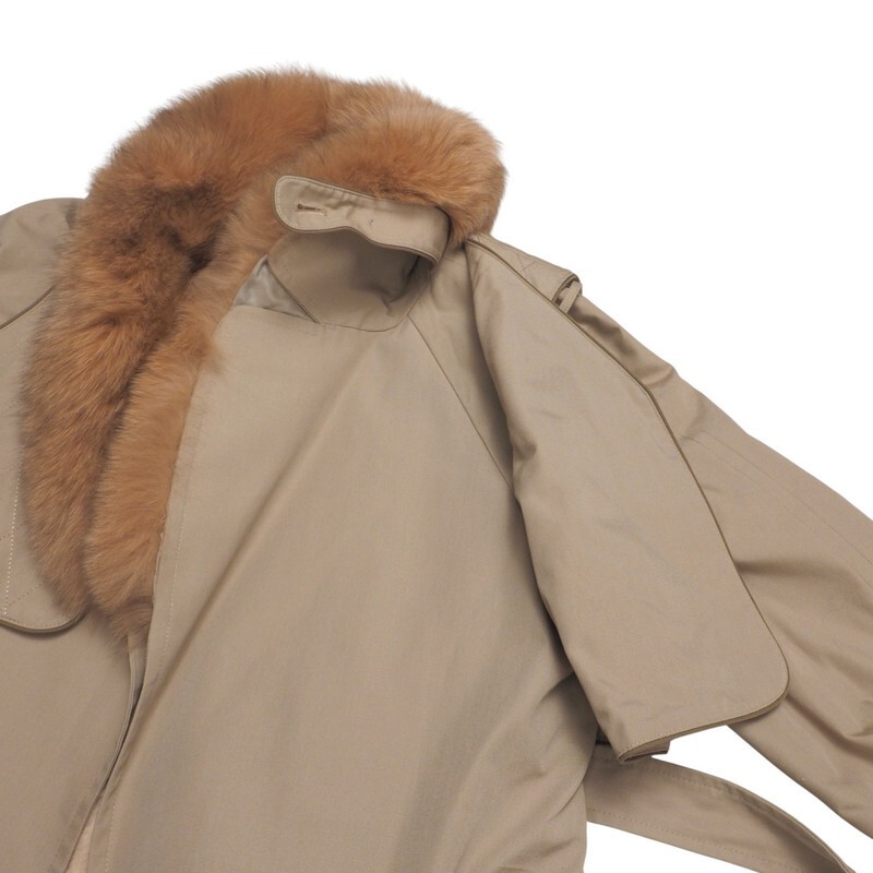 GS3065□フォックスファー衿 シェアードファーライナー ベスト着脱可 トレンチコート ベルテッドコート サイズ11 ベージュ系 | |||